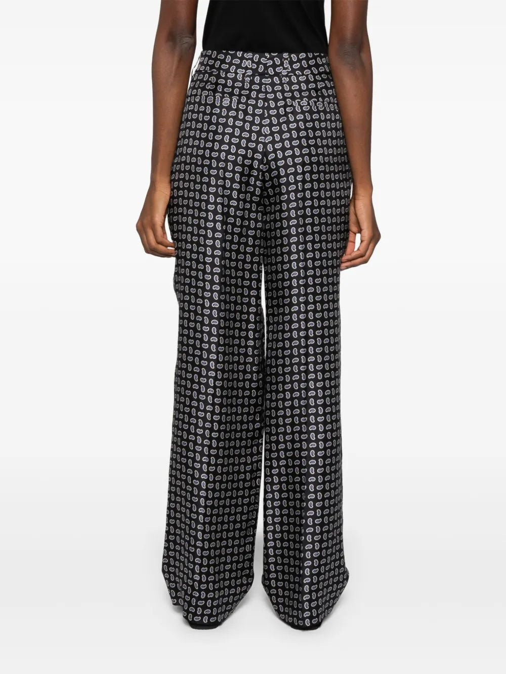 Elevate your wardrobe with these stunning Prada wide-leg trousers featuring a sophisticated geometric print in black and white. The flattering silhouette and eye-catching pattern make these pants a versatile statement piece that effortlessly transitions from office to evening.