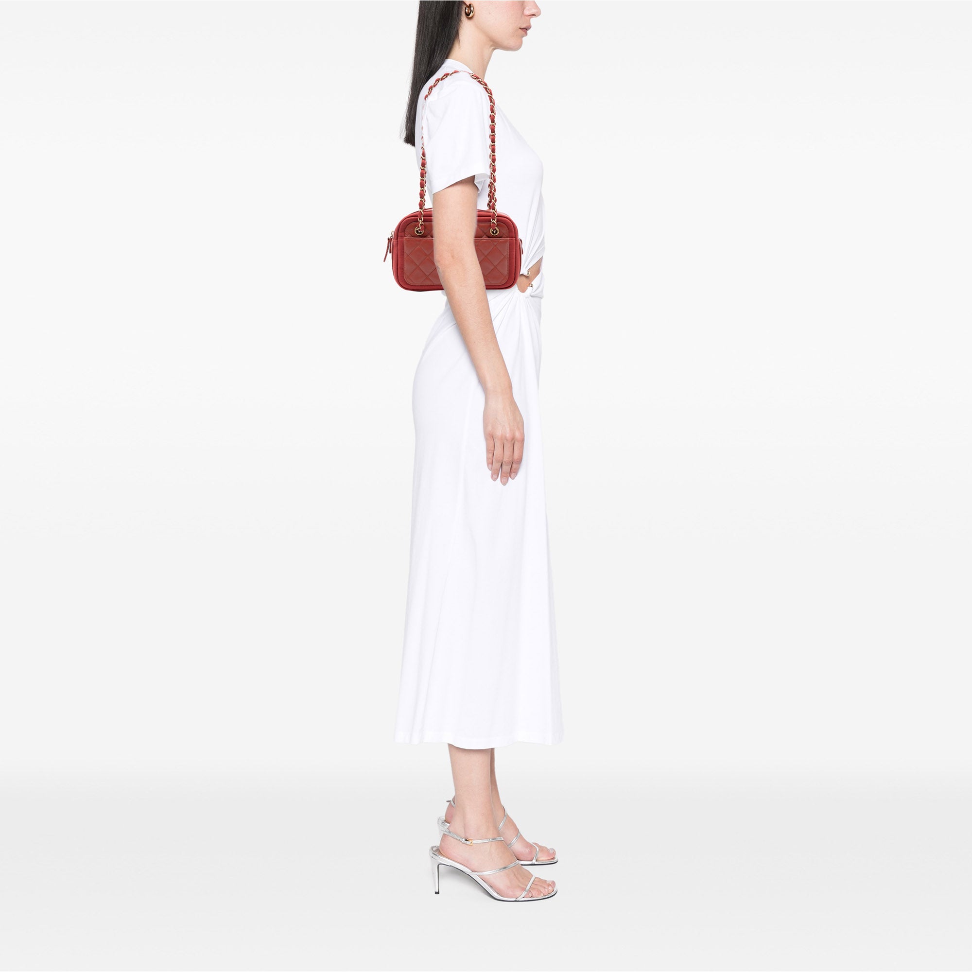 This exquisite Chanel Paris Hamburg Quilted Camera Case is a timeless addition to any luxury handbag collection. Crafted from supple lambskin leather with the iconic quilted pattern and accented with cotton woven chain link straps, this shoulder bag effortlessly combines elegance with functionality.