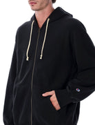 This Champion Reverse Weave Patch Hoodie features a classic full-zip design with a comfortable hood and convenient front pockets.