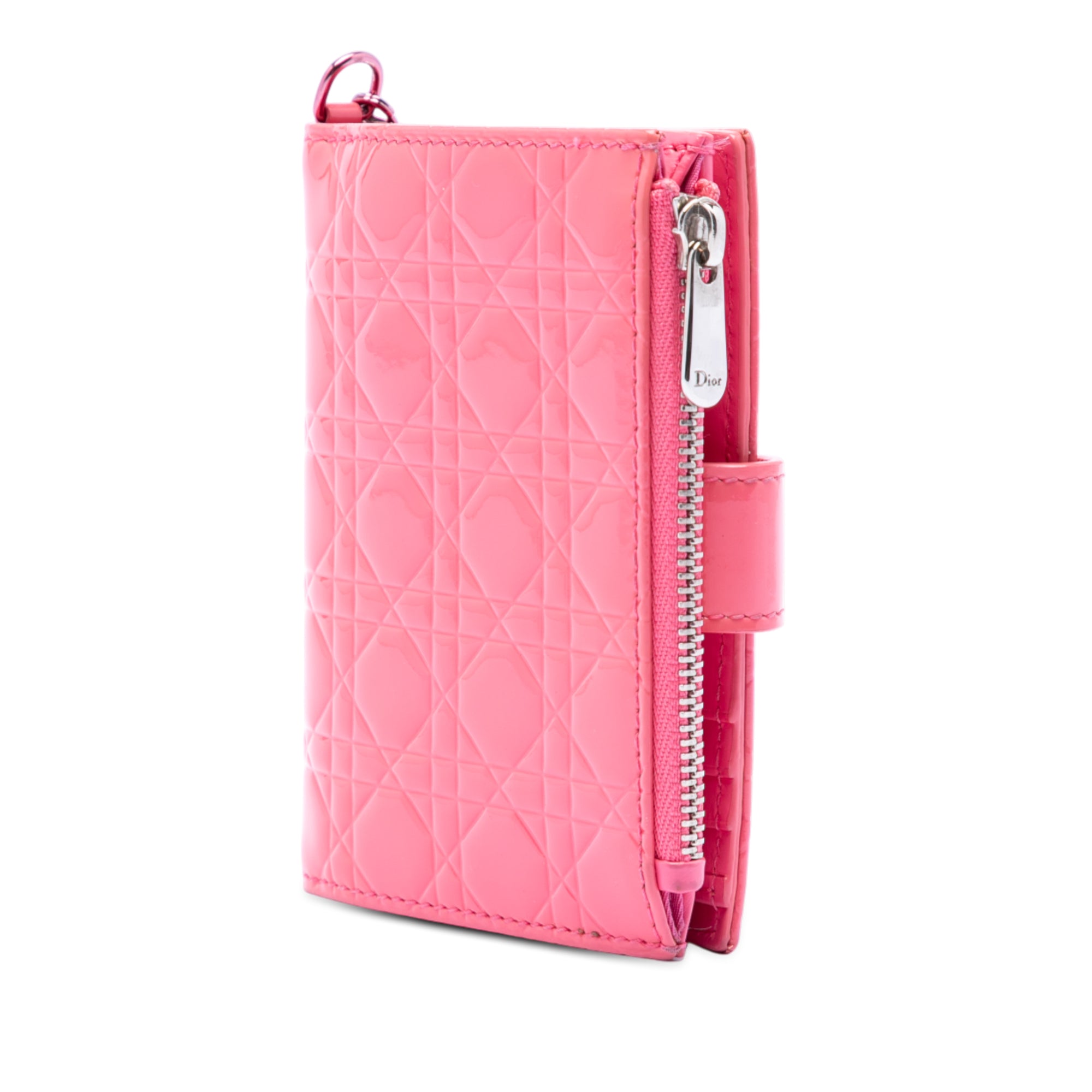 Elevate your everyday essentials with this stunning Patent Cannage Lady Dior French Wallet from Dior. Crafted in luxurious quilted patent leather featuring the iconic cannage pattern, this wallet exudes timeless elegance and sophistication.