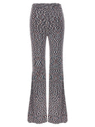 The retro-inspired silhouette and eye-catching pattern make these trousers incredibly versatile—pair them with a simple tucked-in tee and sneakers for an effortlessly chic casual look, or dress them up with a sleek bodysuit and heels for evening sophistication.
