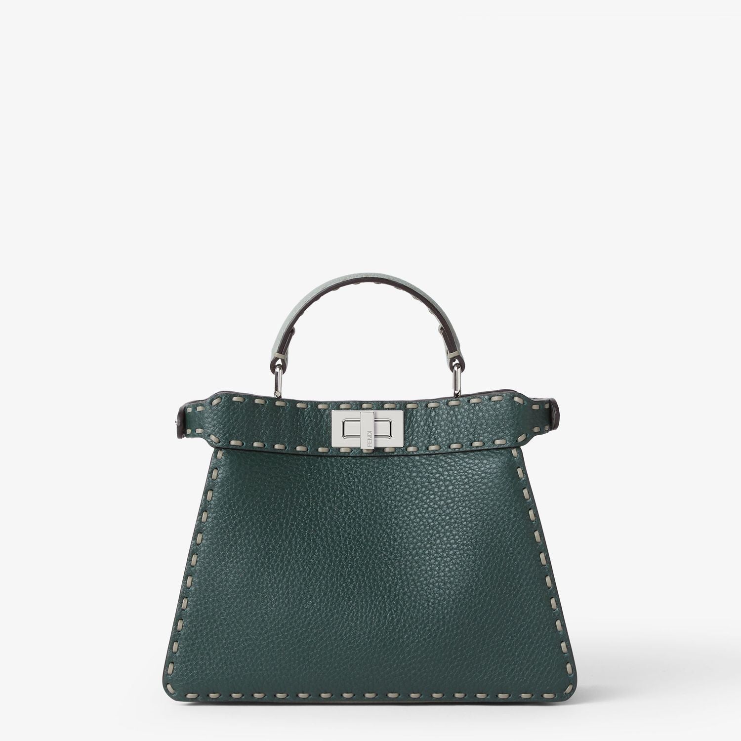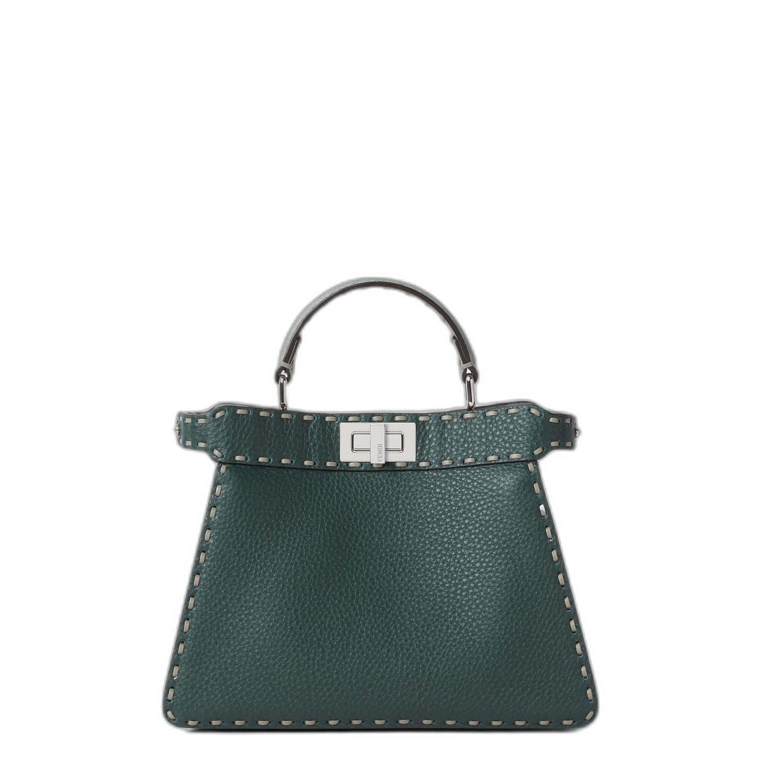 This exquisitely structured handbag features the signature Peekaboo silhouette with a top handle, twist-lock closure, and meticulous hand-stitched Sellaria detailing that showcases Fendi's equestrian heritage. The rich leather construction and compact size make it perfect for transitioning seamlessly from day to evening.