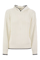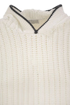 TRADITIONAL WORKMANSHIP AND PRECIOUS DETAILS ENHANCE THE SUMMERY FEEL OF THE COTTON KNIT. THE PERFORATED RIB TECHNIQUE ENRICHES THE COTTON YARN, WITH ITS ESSENTIAL AND CLEAN-CUT CHARACTER, AND GIVES THE MODEL AN AIRY AND LIGHT LOOK. THE CONTRASTING INSERT ALONG THE EDGE OF THE HOOD AND THE BOTTOM COMPLETES THE GARMENT WITH AN ACTIVE ELEMENT, WHILE THE PRECIOUS JEWEL DETAIL GIVES A NOTE OF FEMININE LIGHT, IN PURE BRUNELLO CUCINELLI STYLE. THE COTTON YARN IS SOFT, LIGHT AND BREATHABLE, IDEAL FOR SUMMER AND SPRING GARMENTS. THE COMPACT FIBRE MAINTAINS THE GEOMETRIC MESH STRUCTURE OF THE GARMENT THAT GIVES A PLEASANT FEEL WHEN WORN. - HOOD - DROPPED SHOULDER - WIDE SLEEVE - KNITTED WITH SEVERAL STITCHES DESIGNER ID: MSB582009 C159
