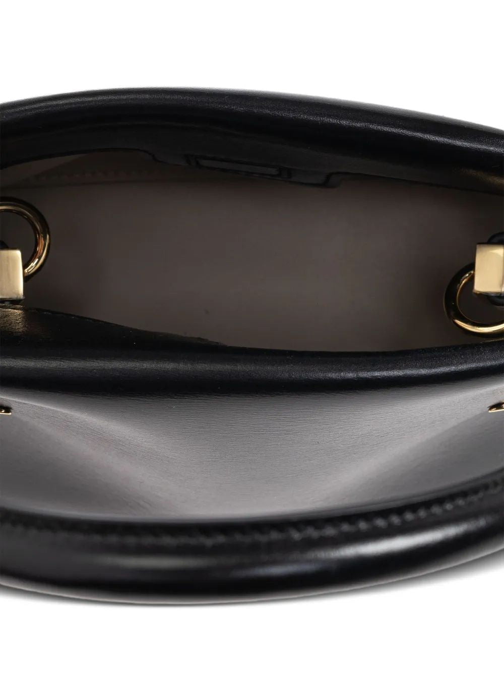 This exquisitely crafted mini bag features a structured silhouette in supple black leather, accented with signature gold-tone hardware that adds a touch of refinement. The dual top handles provide versatile carrying options, making it perfect for transitioning from day to evening.