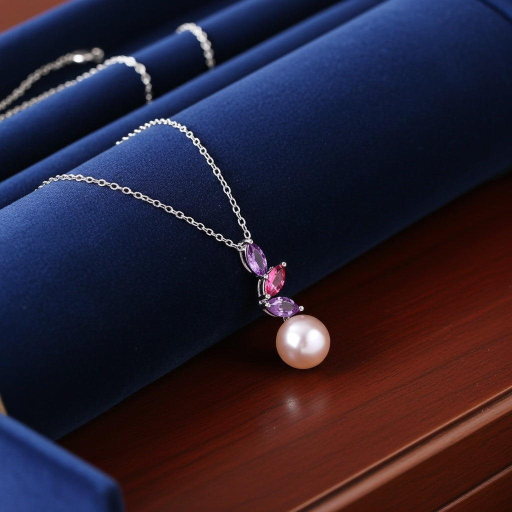 Pink Cultured Freshwater Pearl & Amethyst Pink Topaz Drop Pendant Necklace in Sterling Silver
