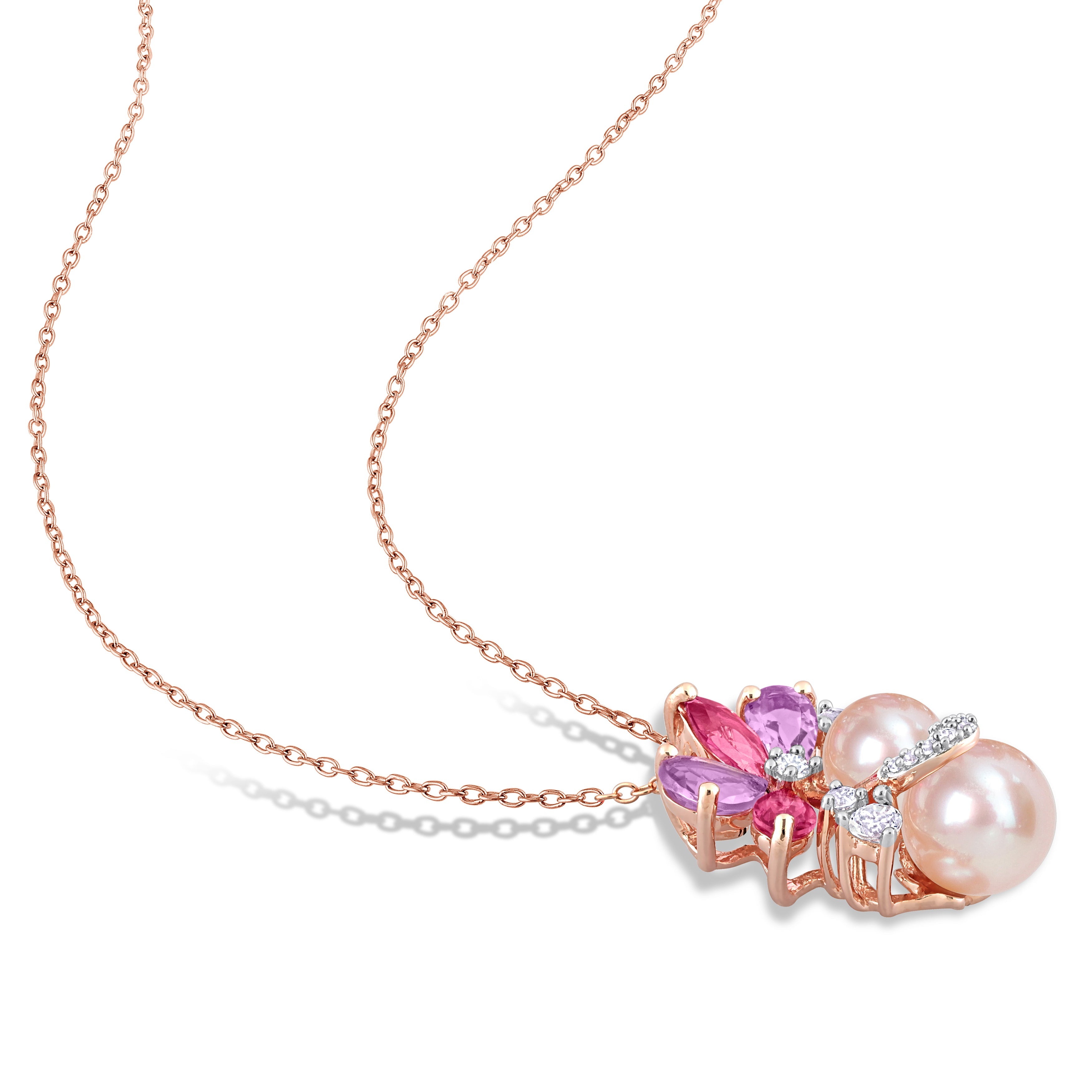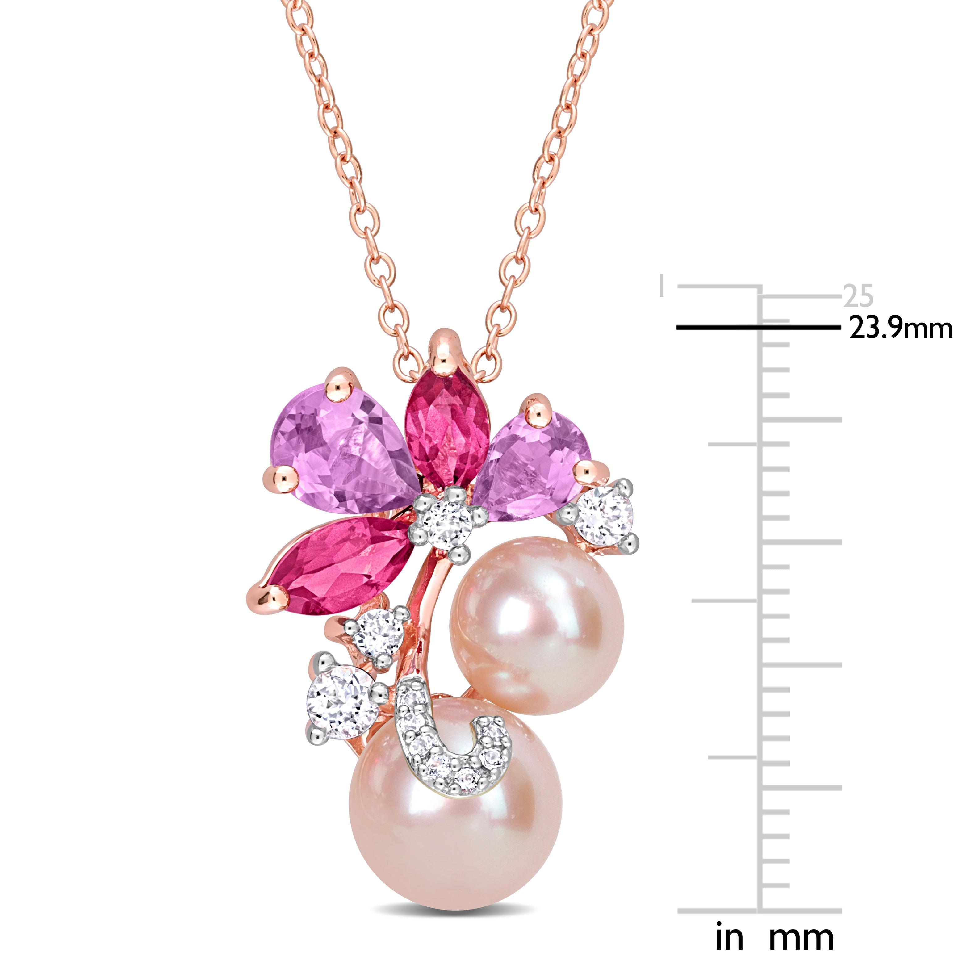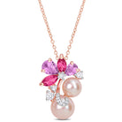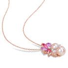 Pink Cultured Freshwater Pearl and Gemstone Cluster Pendant Necklace in 18k Rose Gold Plated Sterling Silver