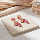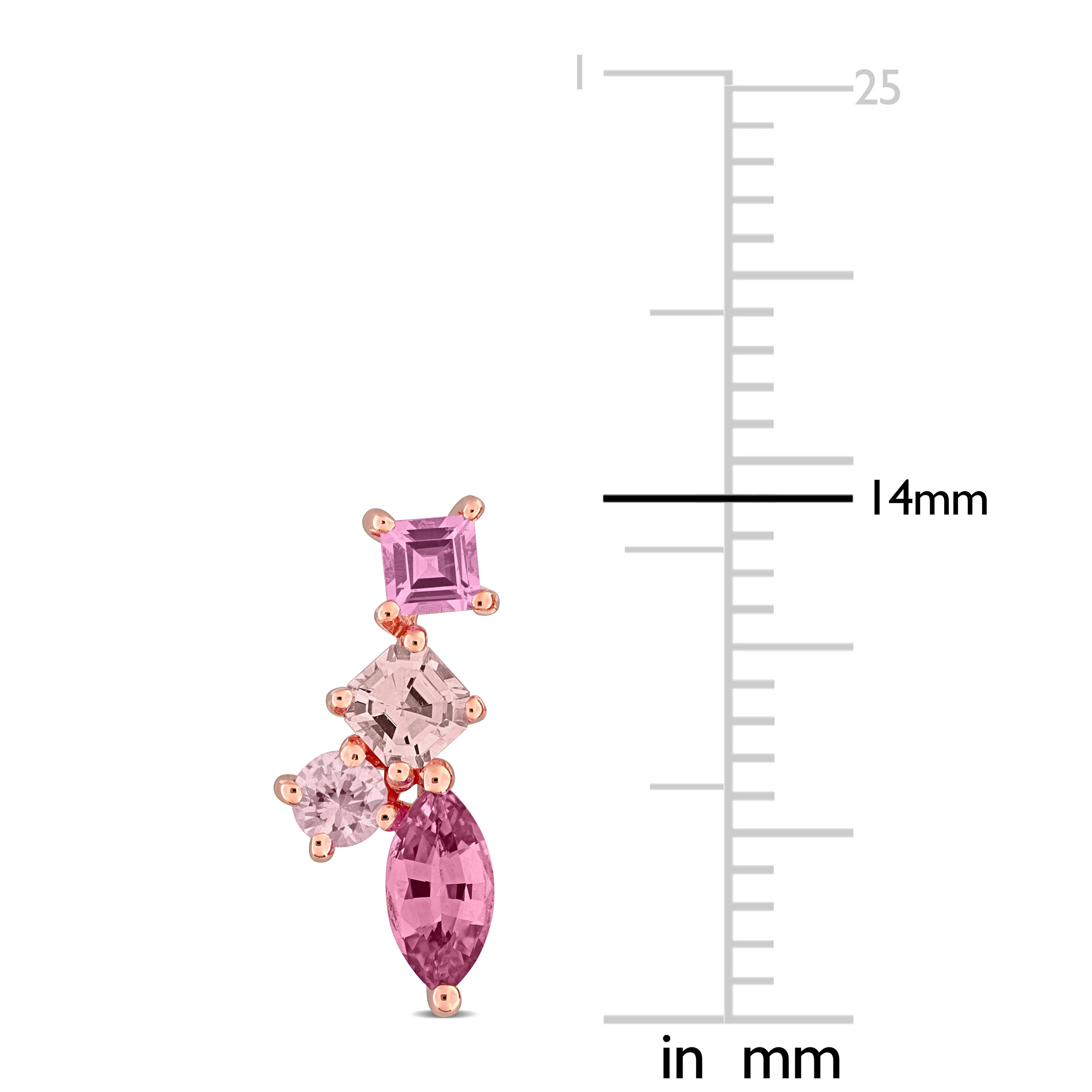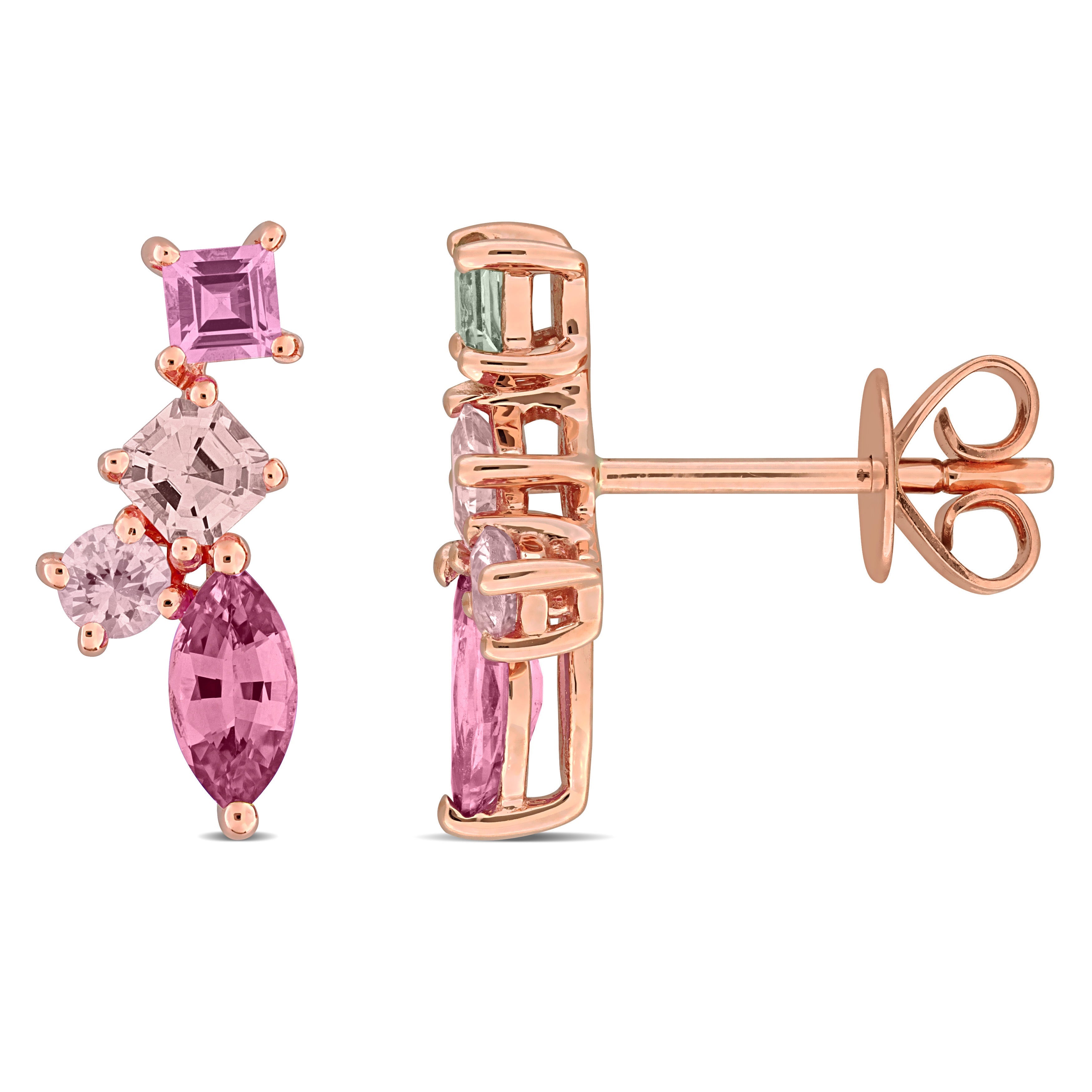 Make a statement of refined sophistication with these enchanting earrings. Meticulously crafted in luminous 14k rose gold, these earrings radiate warmth and luxury. At the heart of each piece, a captivating arrangement of gemstones showcase a dazzling trio: vibrant 2 marquise, 2 round & 1 square-shaped pink sapphires, delicate 2 octagon-shaped light pink sapphires, and verdant 1 square-shaped green sapphires. Perfect for special occasions or elevating everyday wear, these earrings exude charm and elegance, making them a treasure in any jewelry collection.