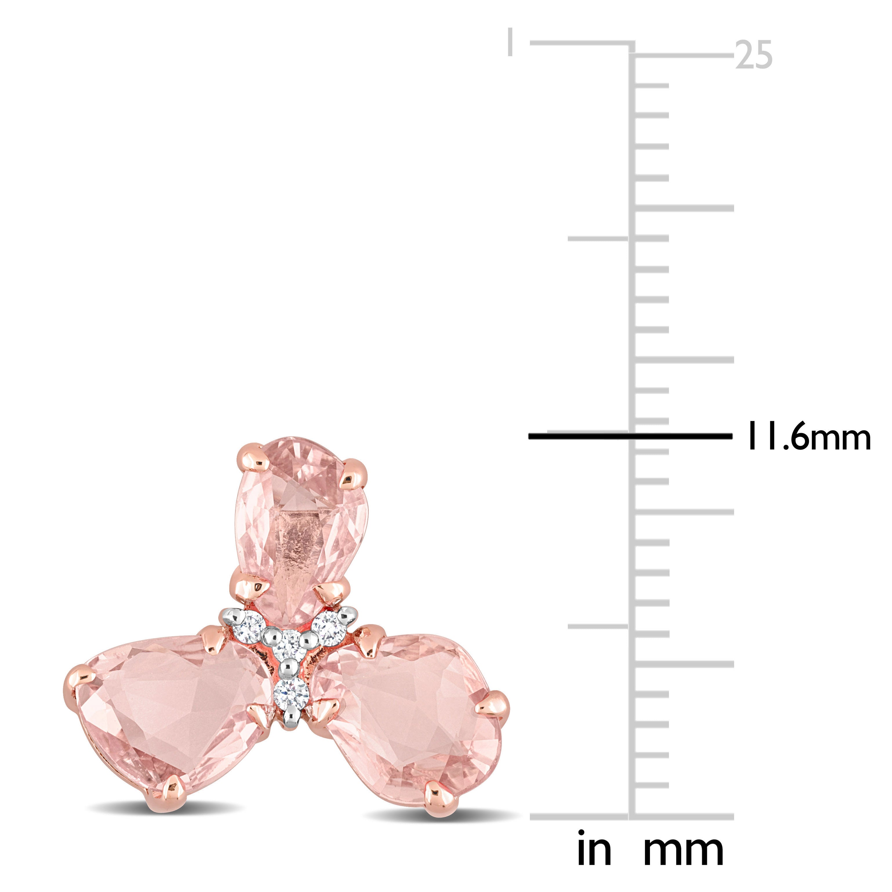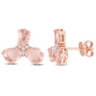 Pink Sapphire & Diamond Accent 3-Stone Stud Earrings in 14k Rose Gold