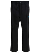 Needles "Piping Cowboy" pants, constructed from thick, stretchy fabric, feature a bootcut construction and piping details applied along the sides. Snap buttons and an integrated drawstring waistband ensure practicality and adjustability. Butterfly embroideries define the western look of the garment, enhancing the elongated and linear silhouette typical of Needles proposals.