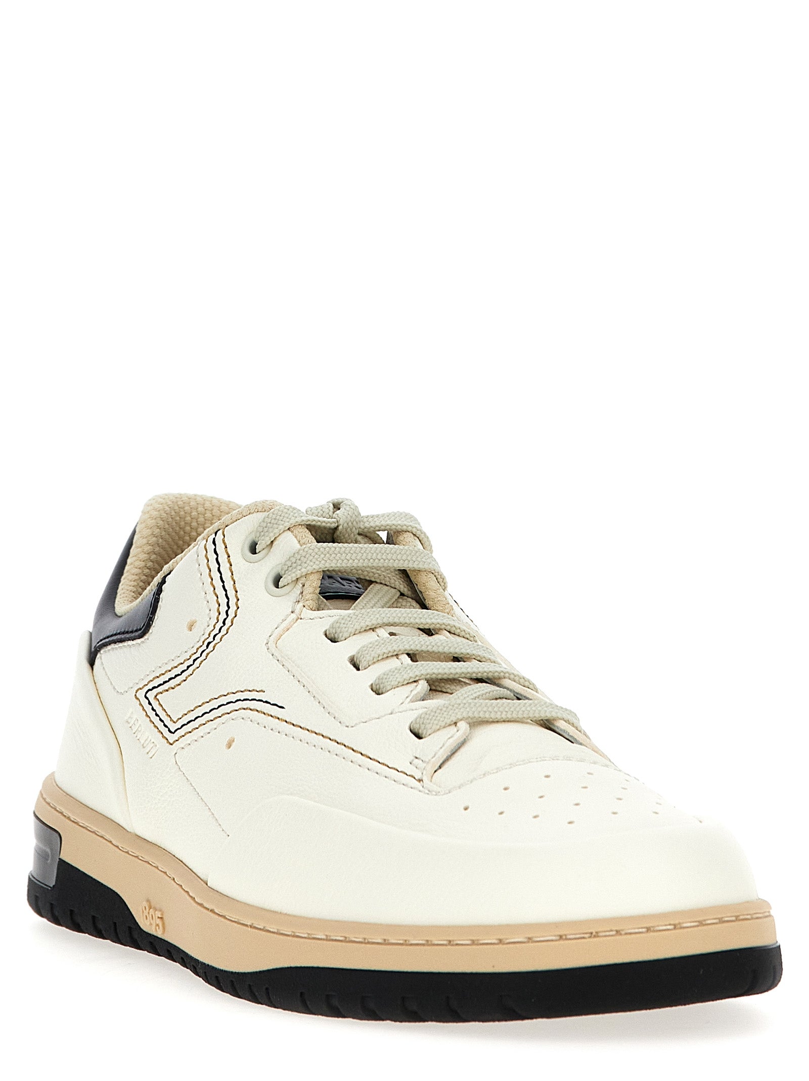 Crafted from premium leather in a versatile cream colorway with sophisticated navy and tan accents, these low-top sneakers feature a classic lace-up design and a durable rubber sole for all-day comfort.
