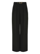 ZIMMERMANN PLEATED BELTED TROUSERS BLACK VISCOSE POLYESTER VISCOSE WIDE-LEG PANTS WOMEN'S CLOTHING