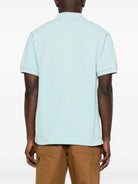 Elevate your casual wardrobe with this Kenzo POLO GOTS BOKE Flower Embroidered polo shirt in a refreshing mint blue hue. Crafted from sustainable GOTS-certified organic cotton, this classic polo features a charming embroidered flower detail on the chest that adds a playful touch to the timeless silhouette.