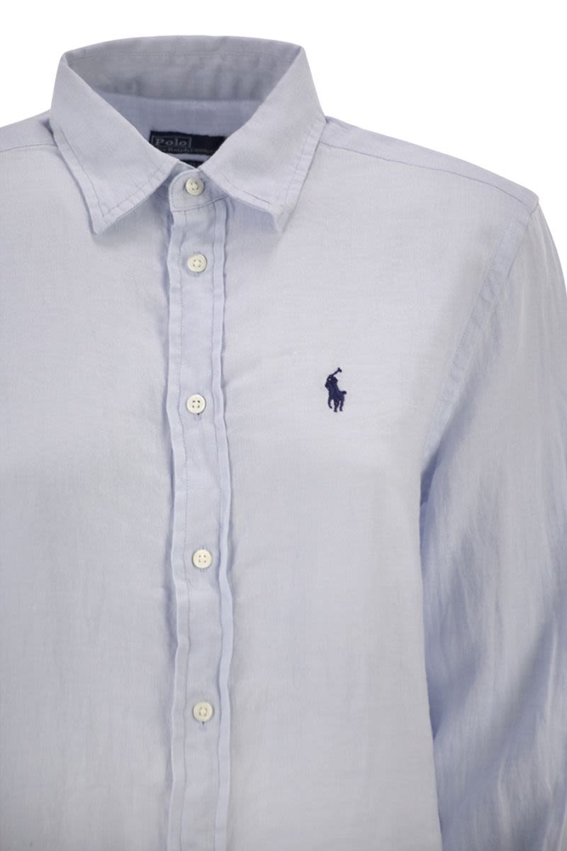 THIS PURE LINEN SHIRT OFFERS A LIGHT, BREATHABLE FEEL, PERFECT FOR WARM-WEATHER DRESSING. ITS CLEAN SILHOUETTE IS ELEVATED BY THE SIGNATURE EMBROIDERED PONY AT THE CHEST, BRINGING TIMELESS POLO RALPH LAUREN ELEGANCE TO VERSATILE, EVERYDAY LOOKS.