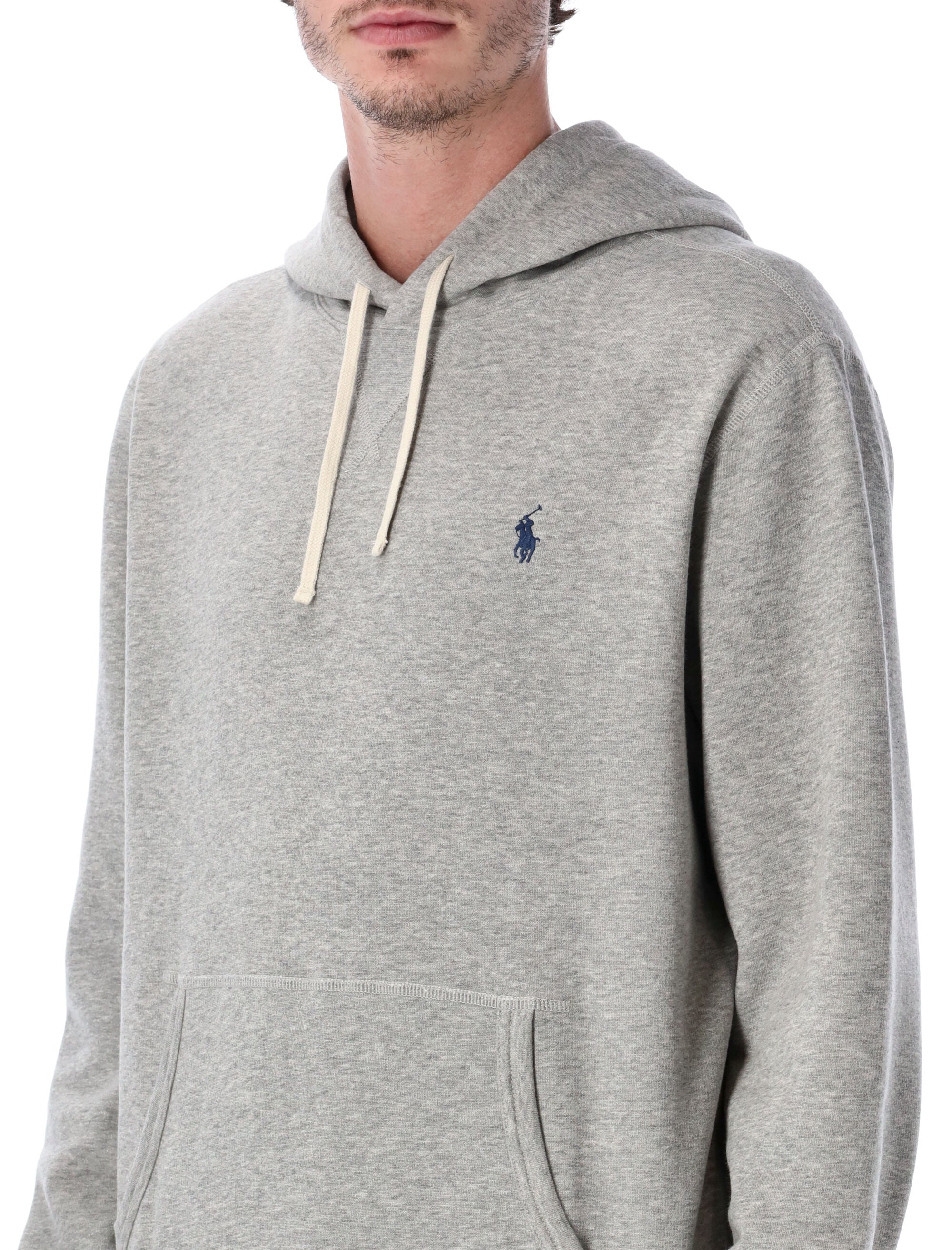 RELAXED YET REFINED, THIS POLO RALPH LAUREN HOODIE IS CRAFTED FROM A SOFT COTTON-BLEND FLEECE THAT ENSURES WARMTH AND COMFORT. FEATURING A DRAWSTRING HOOD, KANGAROO POCKET, AND RIBBED TRIMS, IT EMBODIES THE BRAND’S TIMELESS CASUAL ELEGANCE. THE SIGNATURE EMBROIDERED PONY ON THE CHEST COMPLETES THE LOOK WITH A TOUCH OF HERITAGE STYLE.