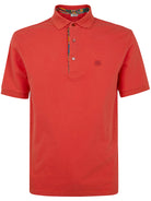 The classic polo silhouette features a traditional collar with button placket and short sleeves, rendered in a vibrant coral-red hue that adds a sophisticated pop of color to any ensemble. Perfect for weekend outings, vacation getaways, or relaxed off-duty styling, this versatile piece pairs effortlessly with chinos, denim, or tailored shorts.