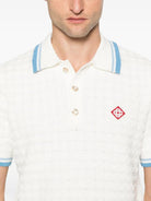 CASABLANCA STRIPE TRIM POLO SHIRT WHITE FEATURING SHORT FRONT BUTTON FASTENING SHORT SLEEVES LOGO PATCH ON THE CHEST MADE FROM VISCOSE COTTON NYLON POLYESTER SPANDEX ELASTANE POLO SHIRTS CLOTHING MEN
