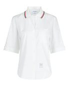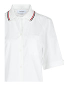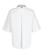 - Nametag applique; Pleated back yoke; Signature striped grosgrain loop tab; Chest patch pocket