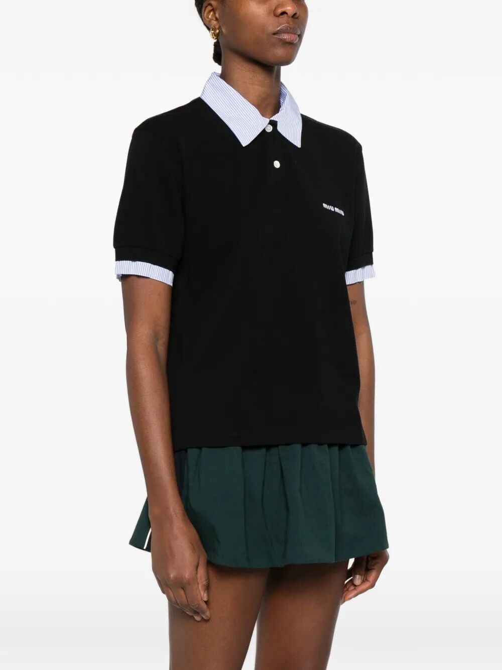 POPLIN-DETAILED COTTON PIQUÉ POLO SHIRT
