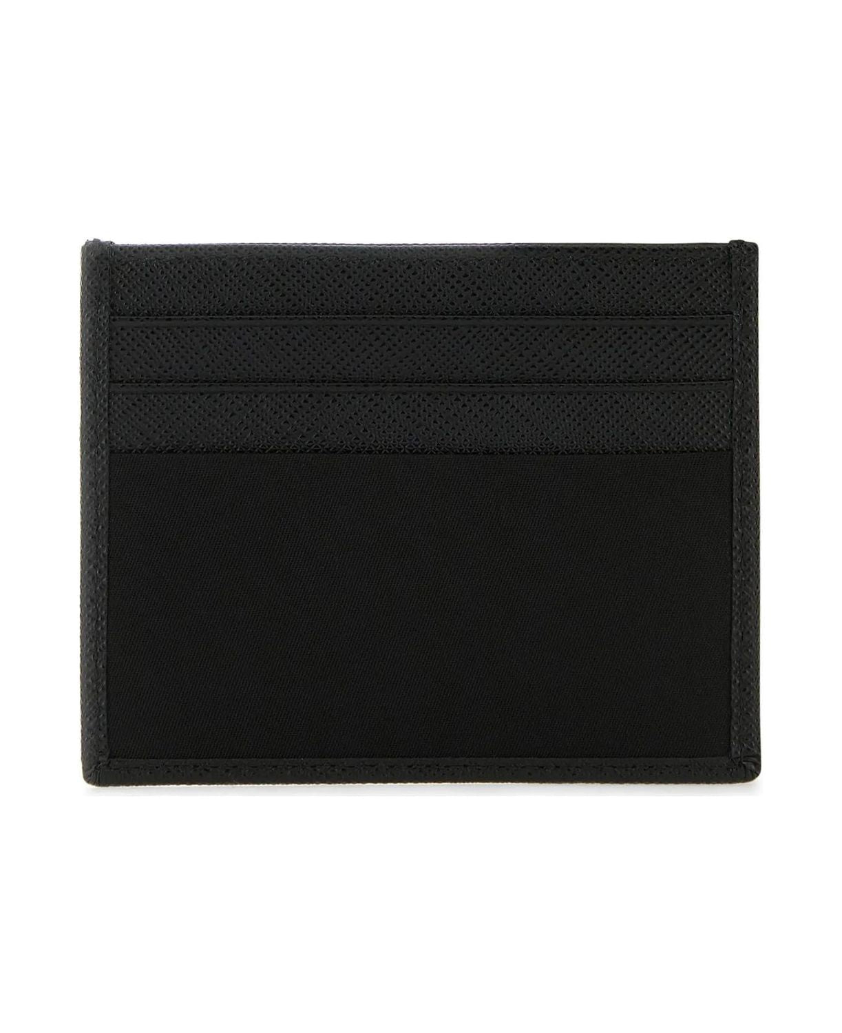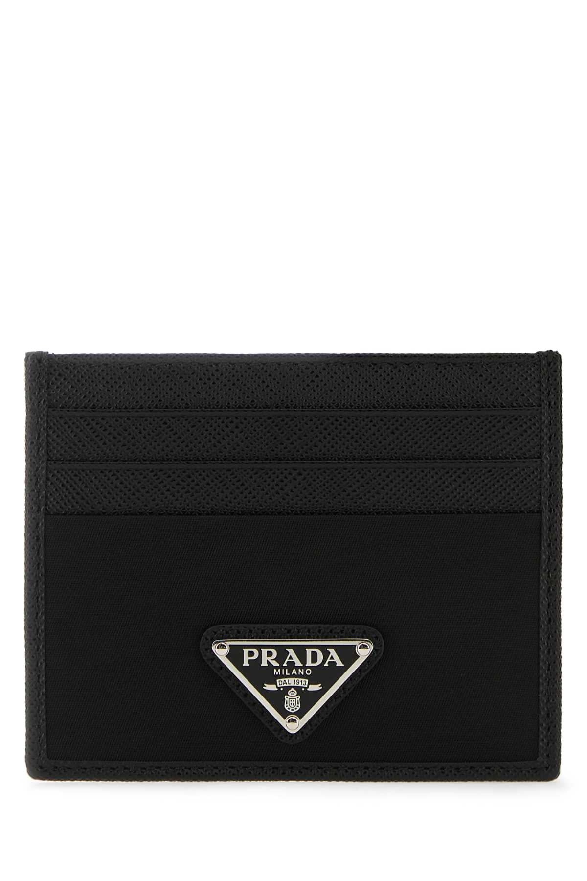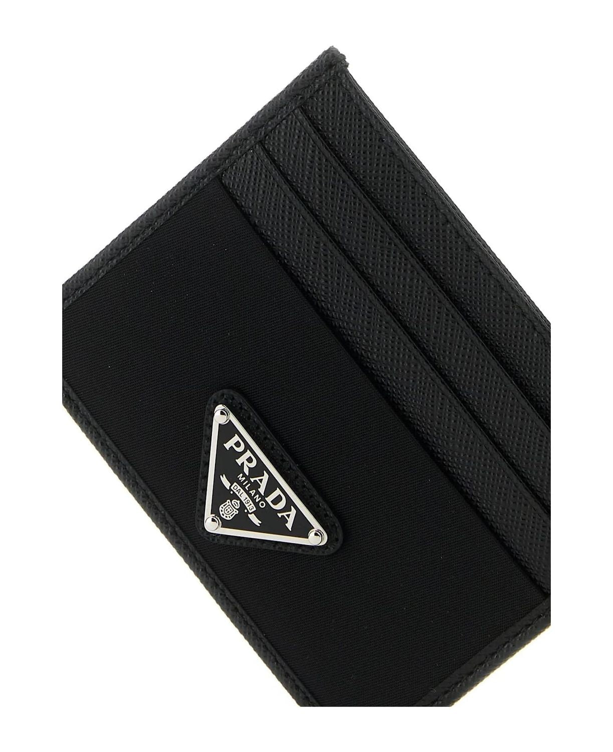 Elevate your everyday essentials with this sleek credit card holder from Prada. Crafted from luxurious black Saffiano leather, this compact accessory features the iconic triangular logo plaque in polished metal, adding an unmistakable touch of Italian sophistication.