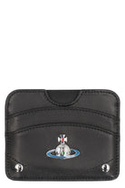 WALLET IN BLACK LEATHER, WITH AN ORB DETAIL ON THE FRONT. IT OFFERS VARIOUS SLOTS FOR CARDS AND BANKNOTES, ENSURING EXCELLENT ORGANIZATION. WIDTH: 10 CM HEIGHT: 8 CM