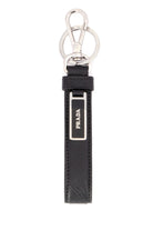 The structured leather strap showcases Prada's iconic logo on a metal plate, adding an unmistakable touch of luxury to your keys or bag. Perfect for keeping your essentials organized in style, this keychain doubles as a chic bag charm that complements any look.