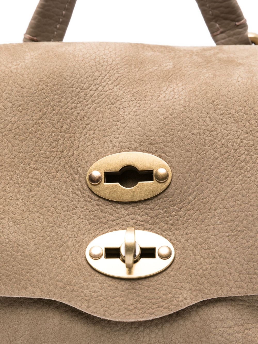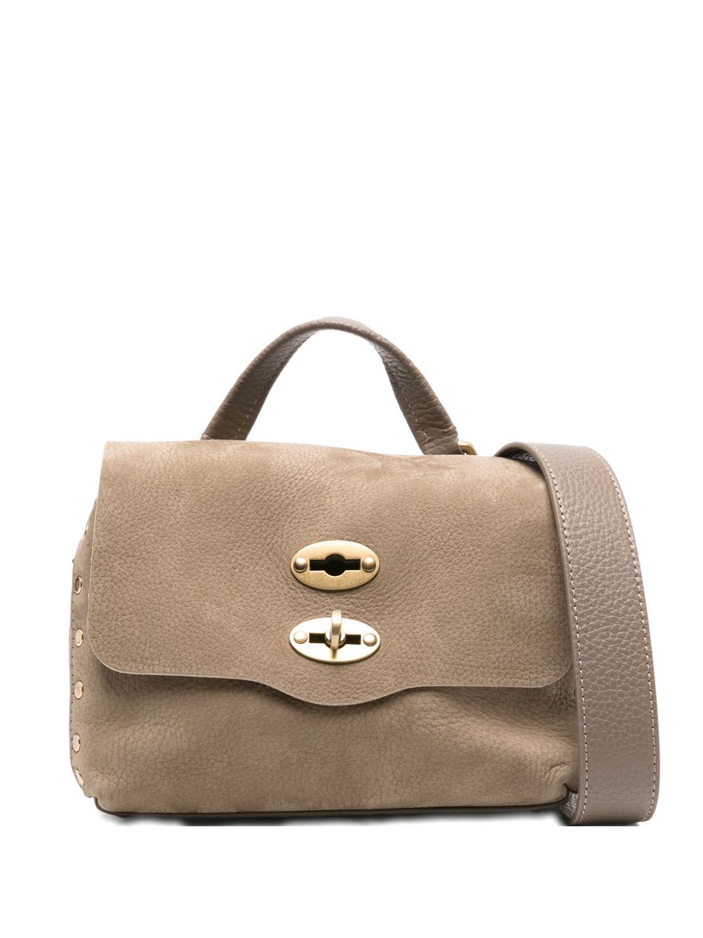 DOVE GREY CALF SUEDE TOP HANDLE GOLD-TONE CLASP STUDDED DETAILING DETACHABLE SHOULDER STRAP
