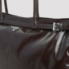 Crafted from rich, glossy leather in a timeless chocolate brown hue, this structured tote features elegant double top handles and a detachable shoulder strap for versatile carrying options. The spacious interior makes it perfect for work, shopping, or weekend getaways, while the signature Prada craftsmanship ensures lasting quality.