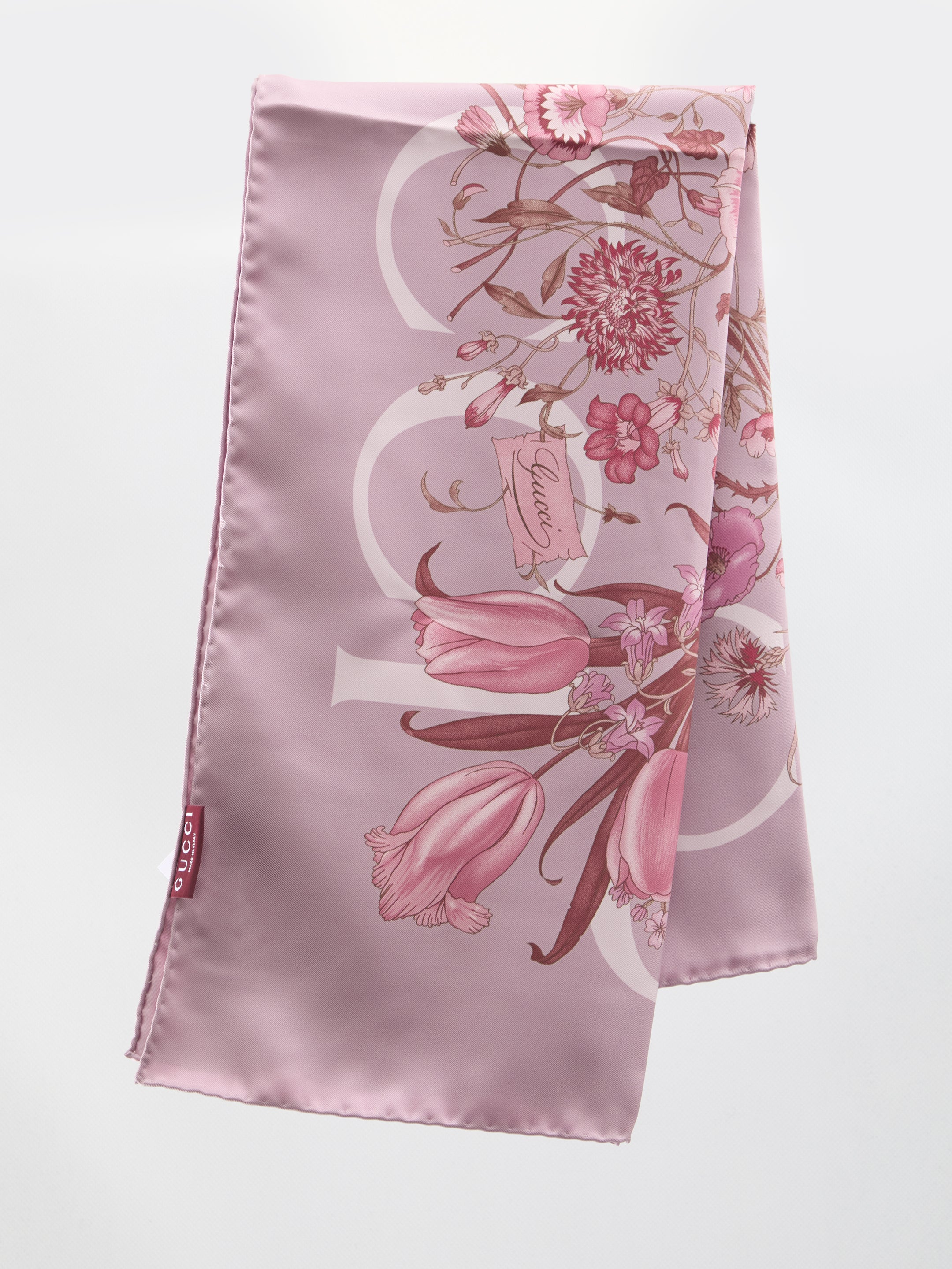 This exquisite Gucci silk foulard showcases the iconic Flora print in beautiful pink tones, making it a timeless addition to any accessory collection.