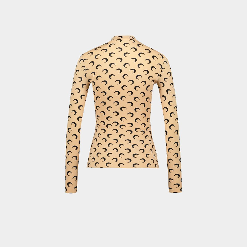 MOON PRINTED JERSEY LS HIGHNECK TOP