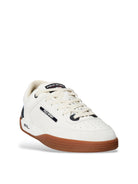 Elevate your everyday style with the Polo Ralph Lauren PS 150 Logo Sneakers. These classic low-top sneakers feature a clean white leather and textile upper accented with signature branding and contrasting black details.