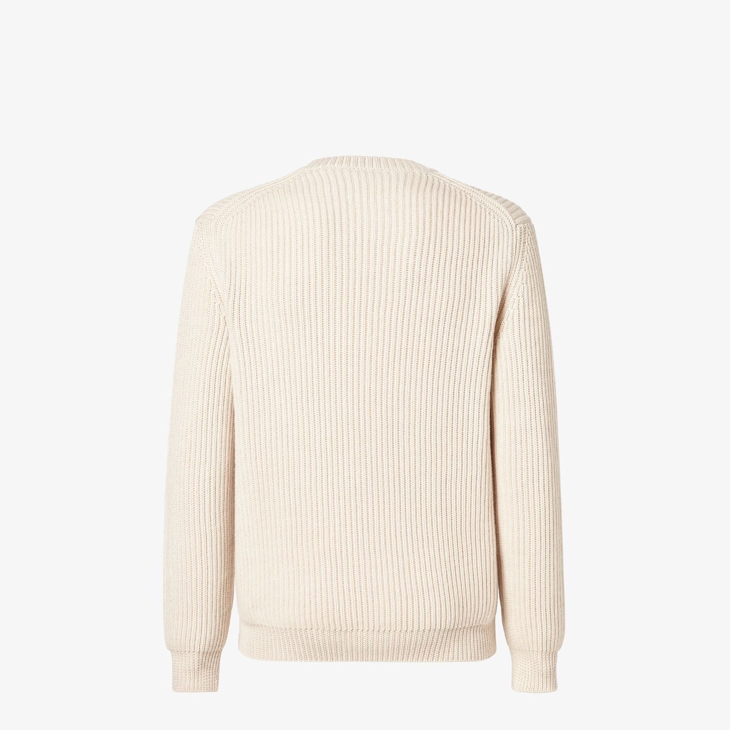 Elevate your everyday wardrobe with this luxurious pullover from Fendi. Crafted in a soft, ribbed knit fabric in a versatile cream tone, this sweater features subtle tonal branding that adds a touch of designer sophistication.
