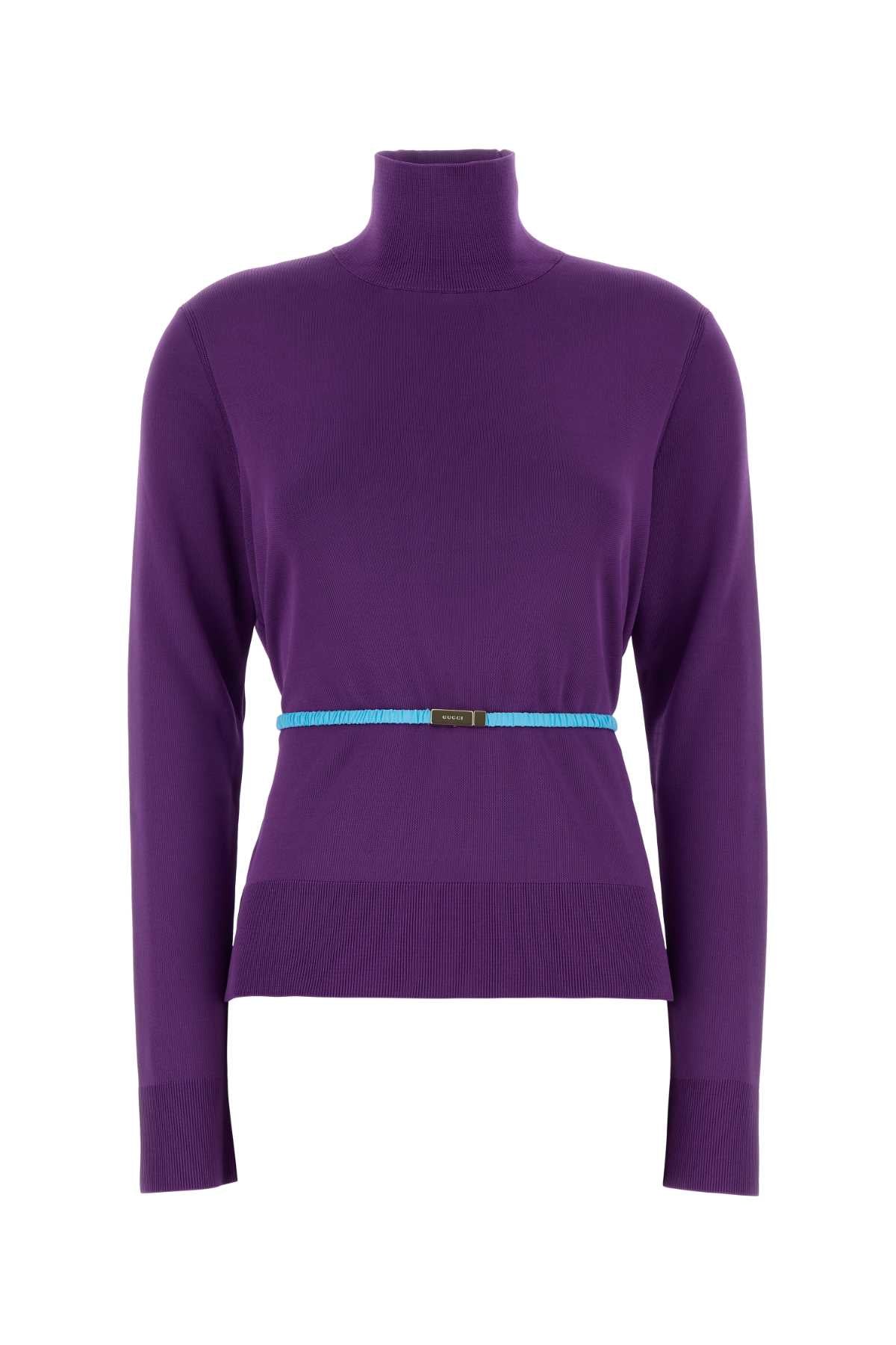 Elevate your wardrobe with this exquisite Gucci purple crepe pullover sweater, a sophisticated piece that seamlessly blends luxury with everyday elegance. Crafted from premium crepe fabric, this turtleneck sweater features long sleeves and a refined silhouette that flatters the figure beautifully.