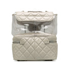The Chanel Aquarium Backpack is a stunning fusion of luxury and functionality, featuring exquisite quilted lambskin leather paired with a transparent PVC body that showcases the iconic Chanel craftsmanship. This unique design includes leather-woven chain straps for comfortable wear, a practical exterior zip-around compartment, and a signature top flap with twist-lock closure.