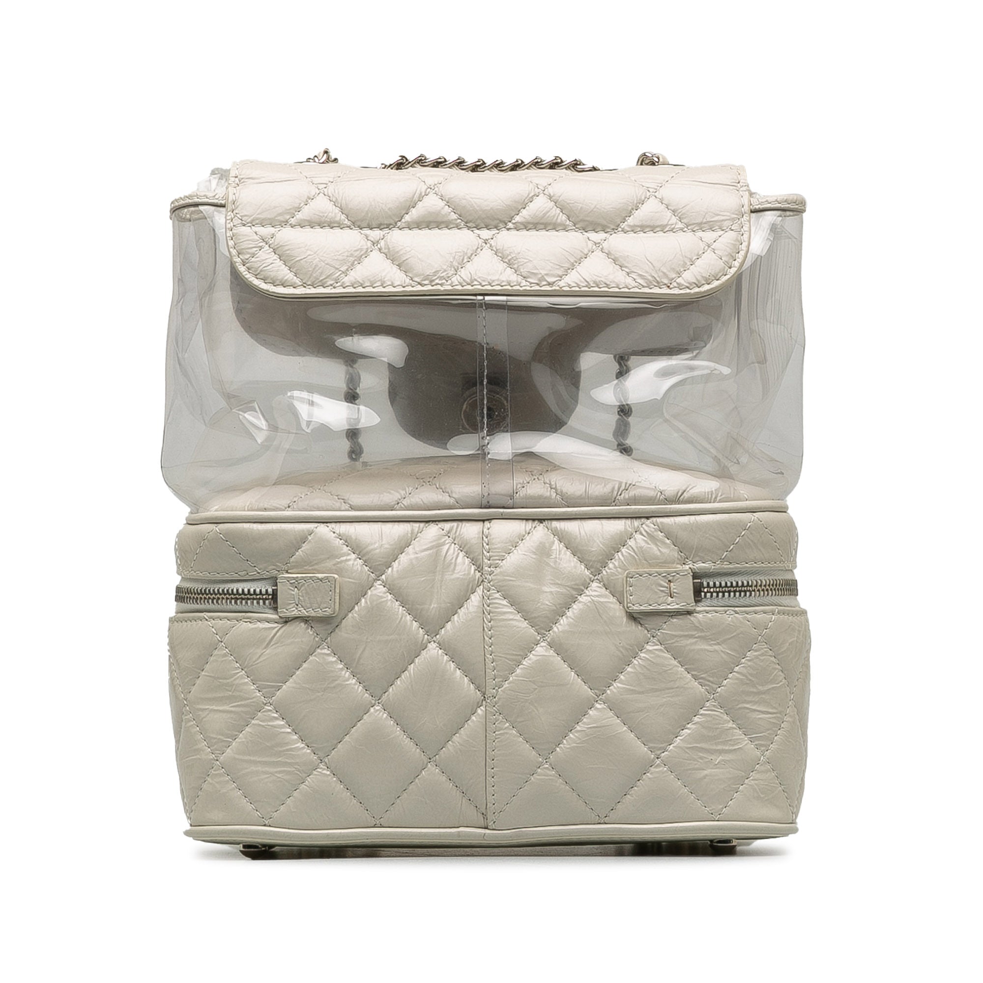 Perfect for the fashion-forward individual who appreciates both style and versatility, this backpack effortlessly transitions from casual daytime outings to chic evening affairs. The transparent PVC element adds a modern, playful touch to the classic Chanel aesthetic, making it a true statement piece.