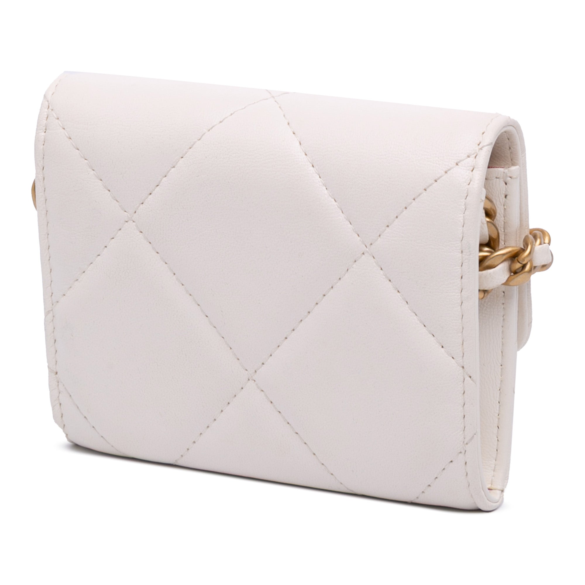 Quilted Lambskin Chanel 19 Card Holder On Chain