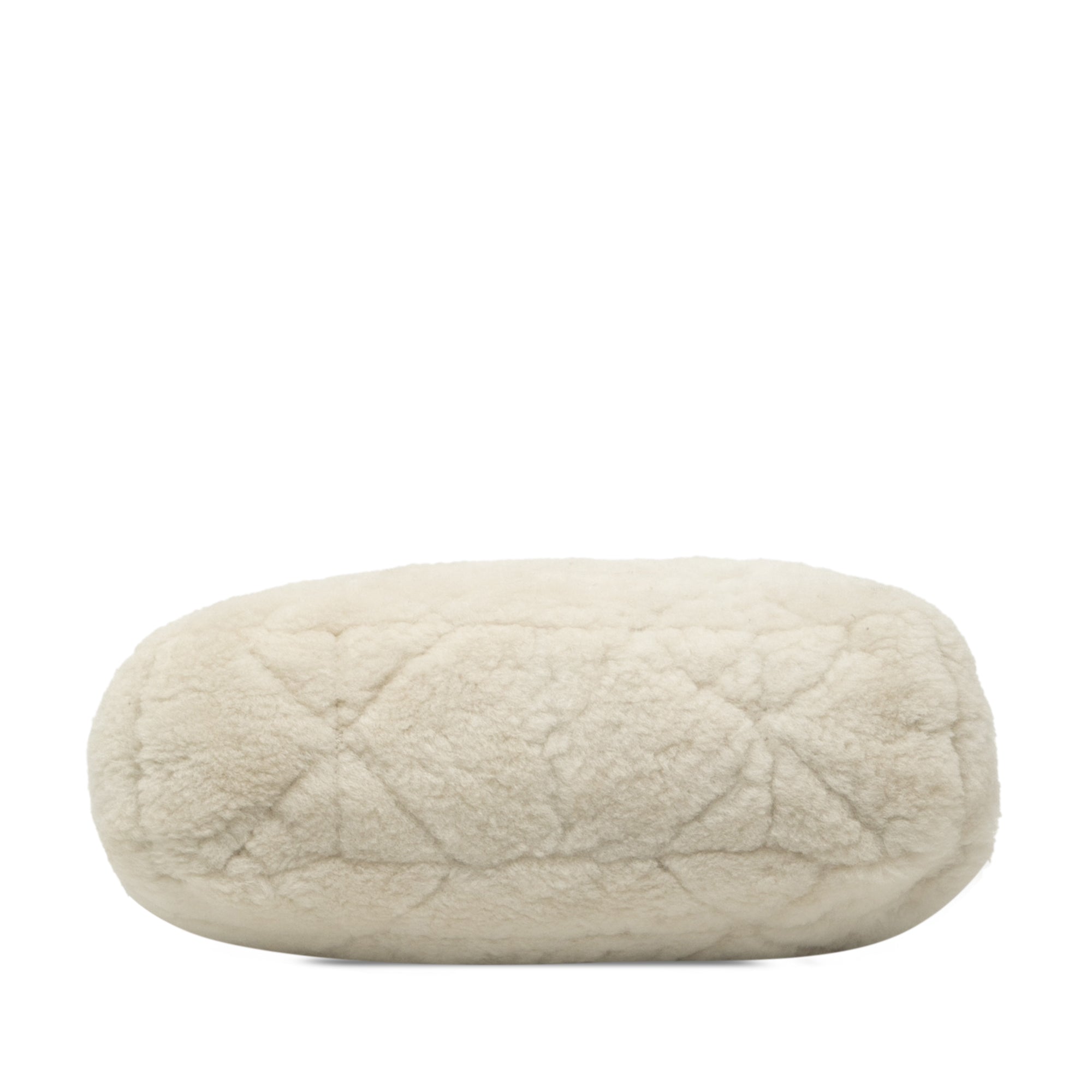 This crossbody bag features a quilted shearling body, an adjustable flat strap, a top zip closure, an interior zip pocket, and a detachable zip pouch.