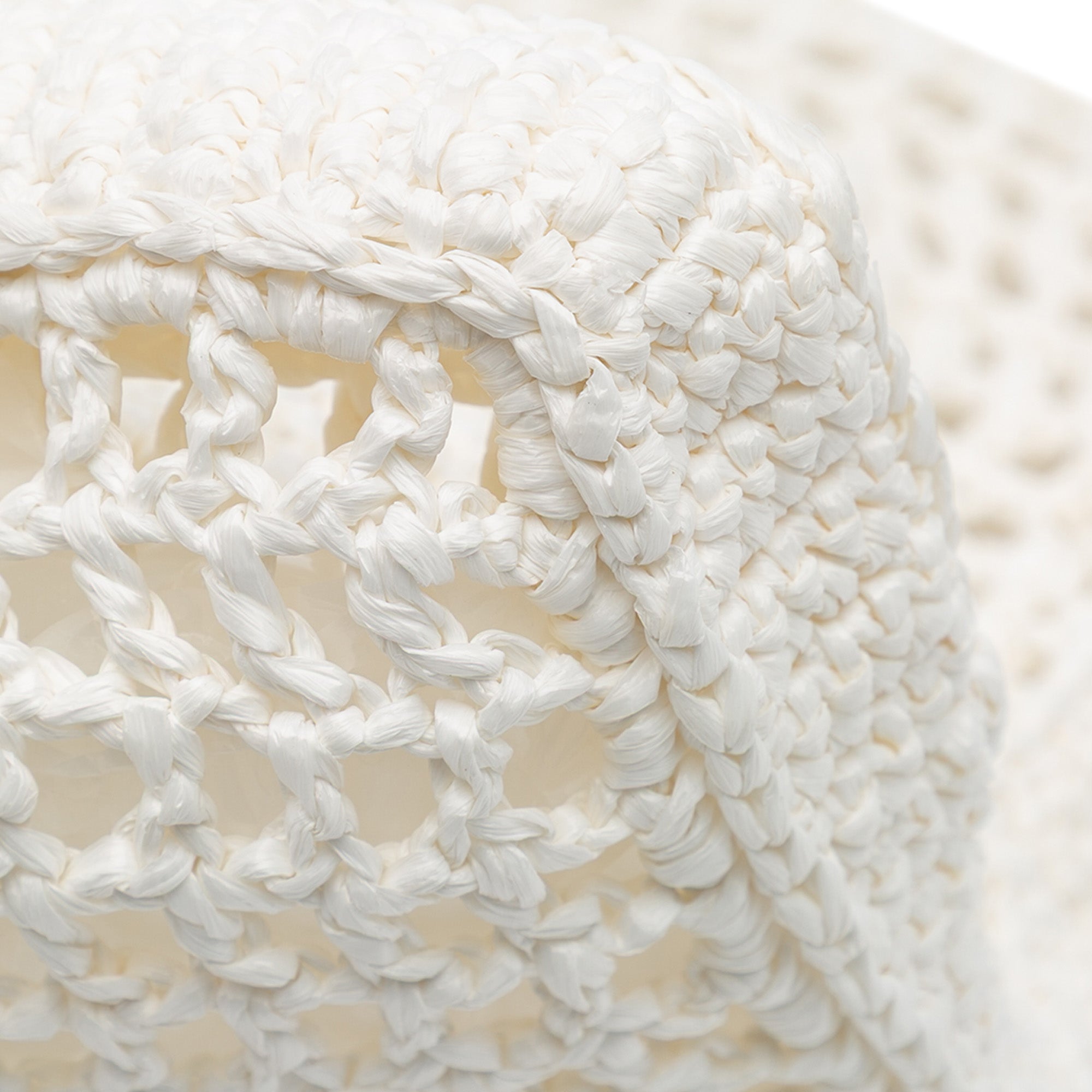 Raffia Effect Crochet Logo Embroidered Tote