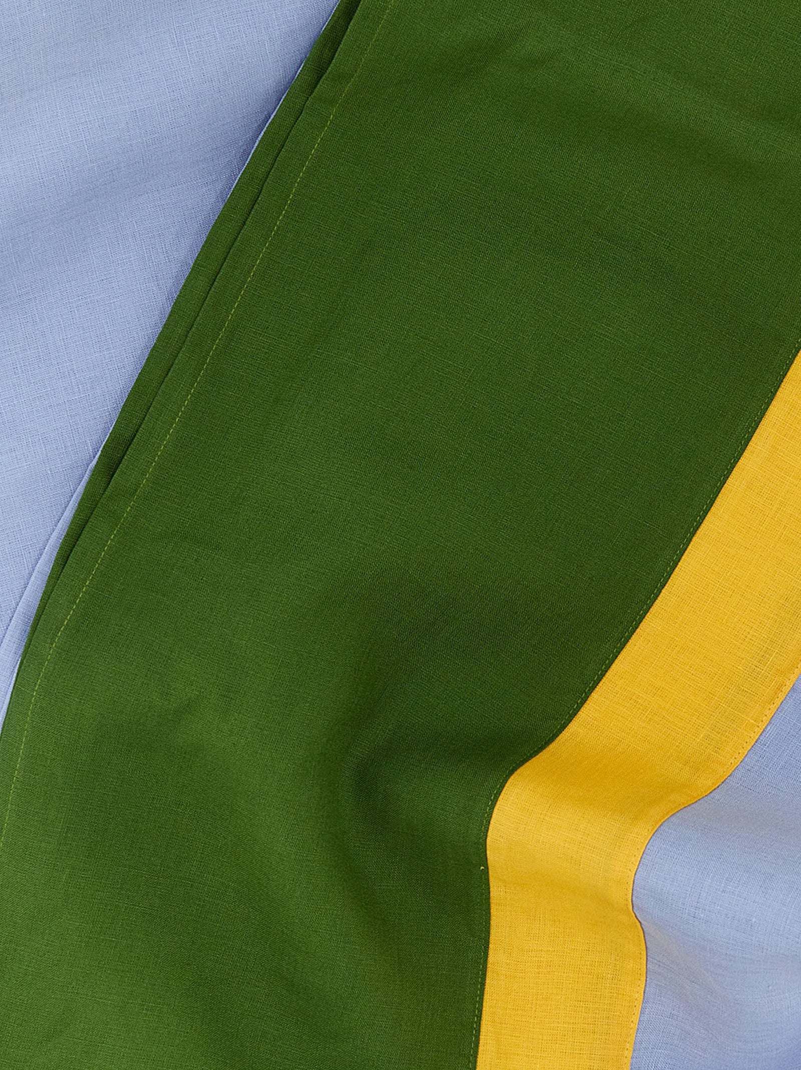Elevate your bathroom with La Double J's 'Rainbow Sky' towel, a stunning colorblock design crafted from luxurious linen. This vibrant piece features bold blocks of rich green, sunny yellow, and soft periwinkle blue that bring a playful yet sophisticated energy to your space.