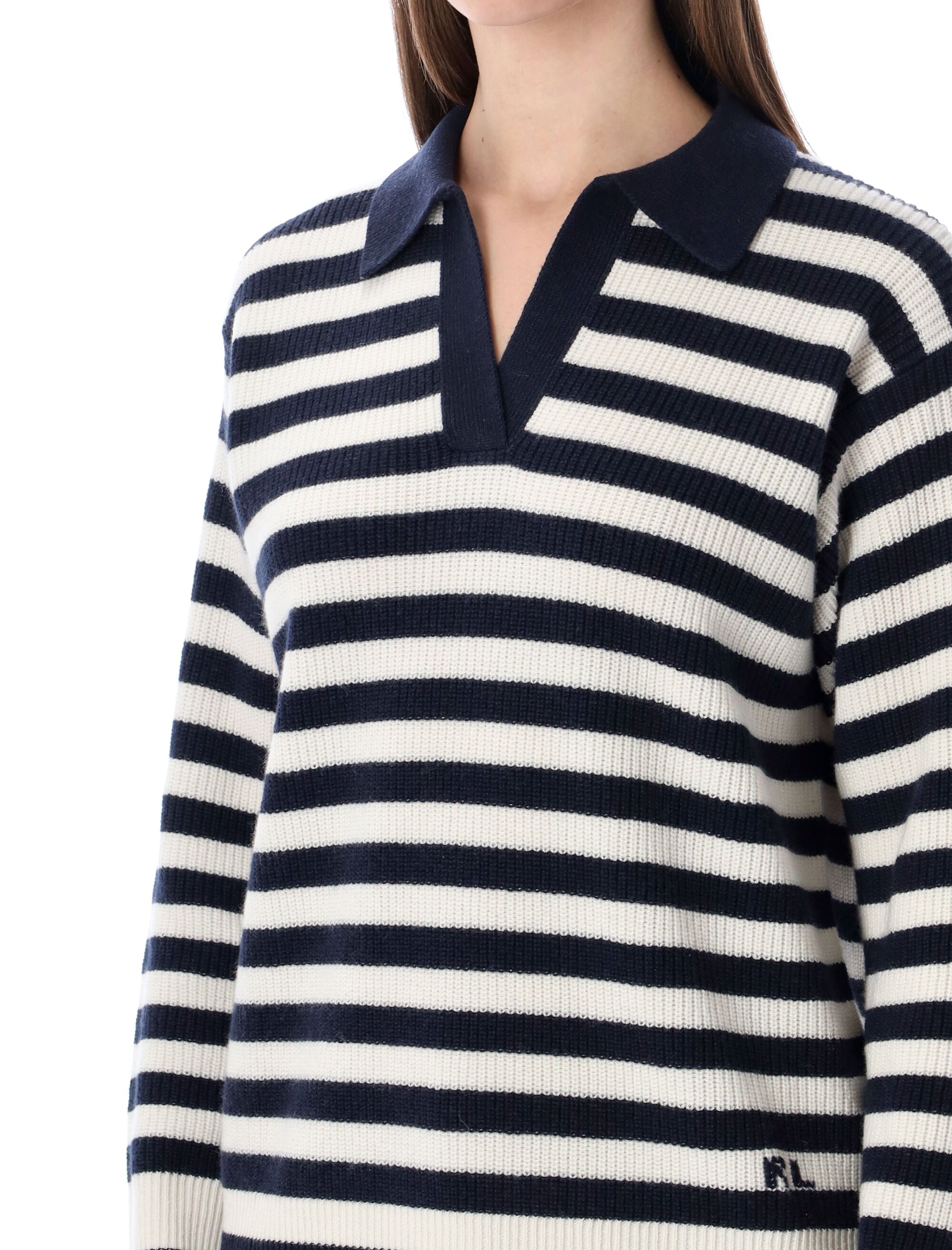 RALPH LAUREN STRIPED CASHMERE POLO JUMPER