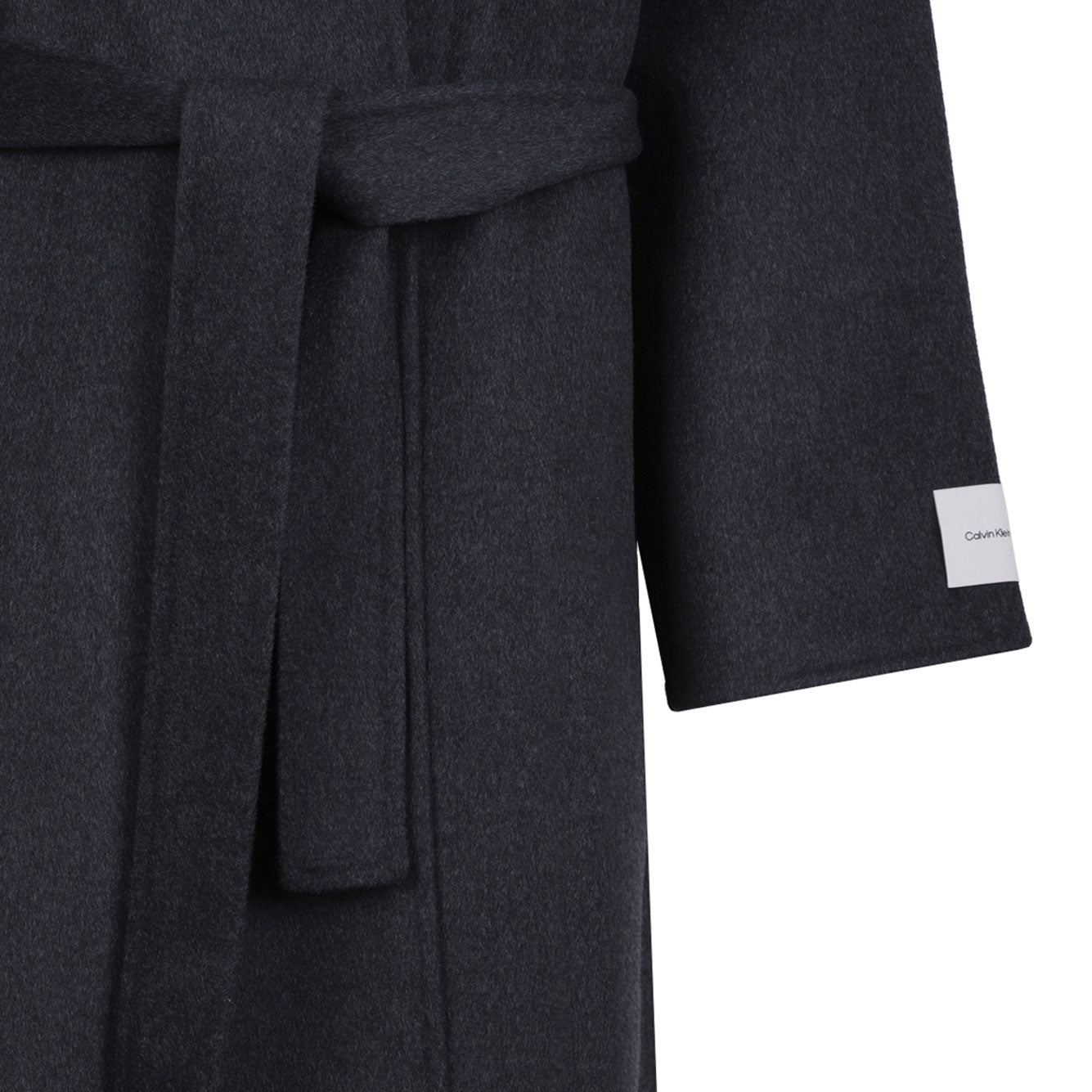 Elevate your outerwear collection with this sophisticated Recycled Wool Charcoal Jacket from Calvin Klein. This timeless trench-style coat features a classic notched lapel, long sleeves, and a flattering belted waist that cinches your silhouette beautifully.