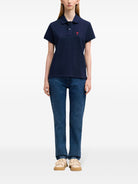 Elevate your casual wardrobe with this classic polo shirt from AMI Paris. Crafted in a rich navy blue, this timeless piece features the brand's signature red Ami de Coeur logo embroidered at the chest, adding a playful touch to the sophisticated silhouette.