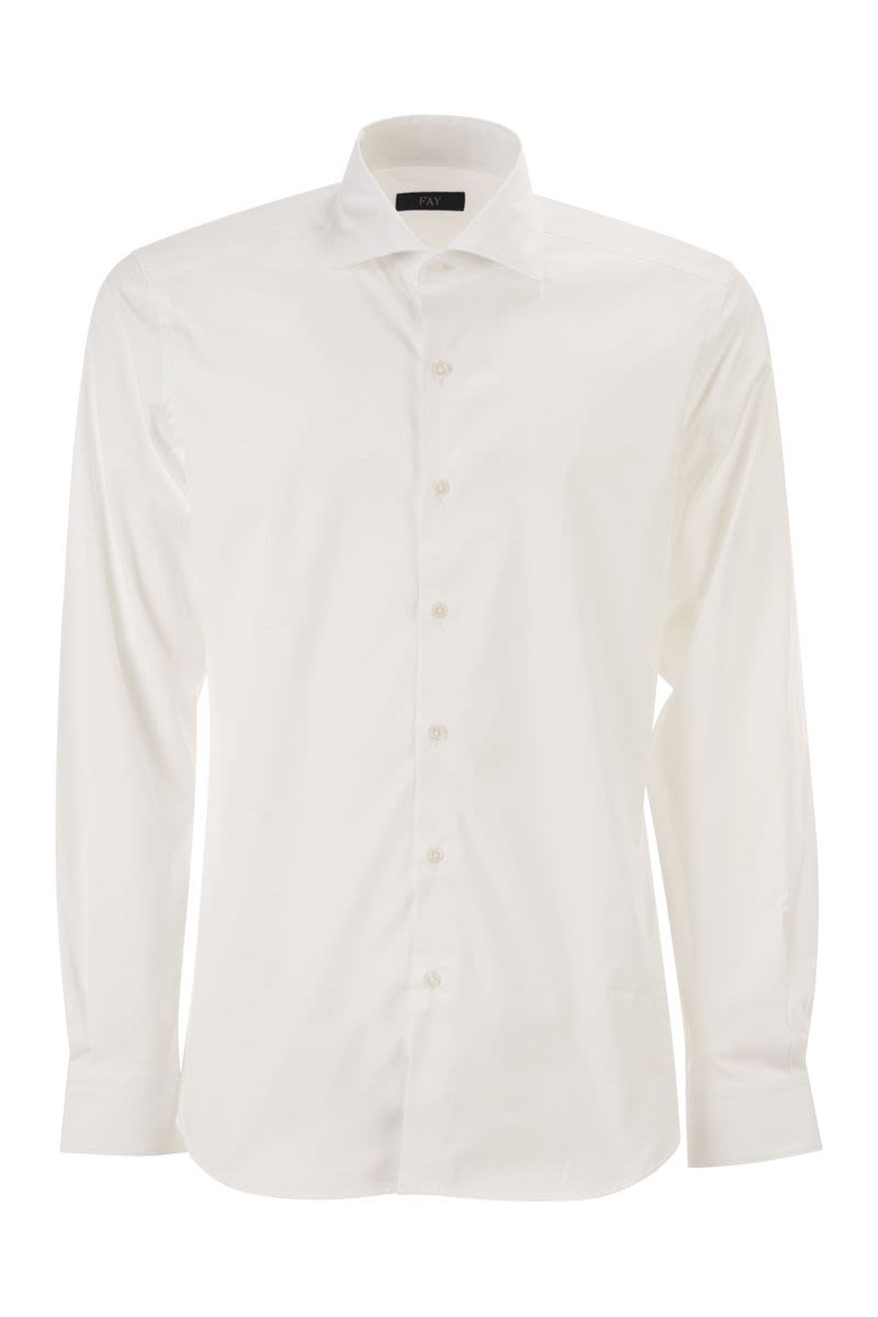 REGULAR FIT SHIRT IN STRETCH COTTON POPLIN WITH FRENCH COLLAR AND BACK PLEATS. FEATURING A BUTTON-DOWN PLACKET, IT HAS THE FAY LOGO EMBROIDERED ON THE BOTTOM. - FRENCH COLLAR - BUTTON CLOSURE - FIT: REGULAR DESIGNER ID: NCMA152259SORMB001