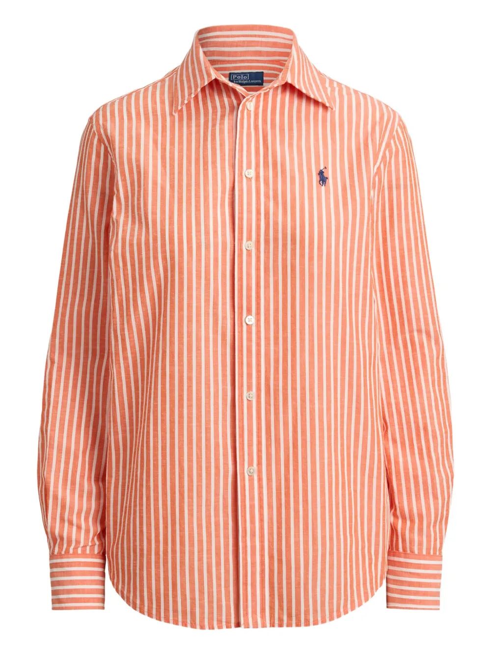 Elevate your everyday wardrobe with this Relaxed Fit Striped Cotton Shirt from Polo Ralph Lauren. Crafted from 100% premium cotton, this classic button-down features vibrant orange and white vertical stripes that bring a fresh, preppy aesthetic to any outfit.
