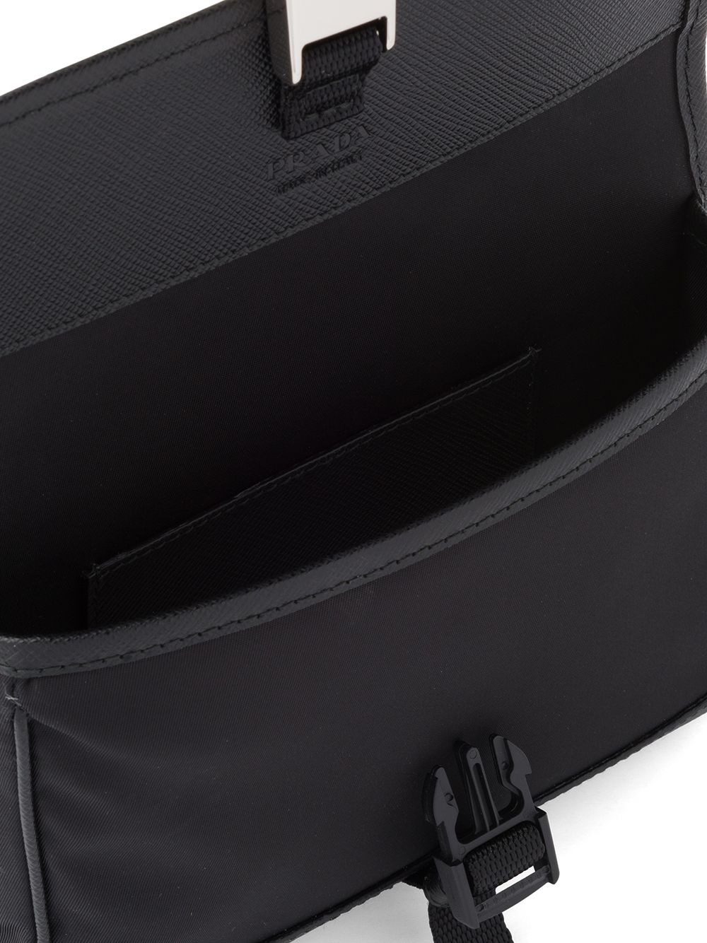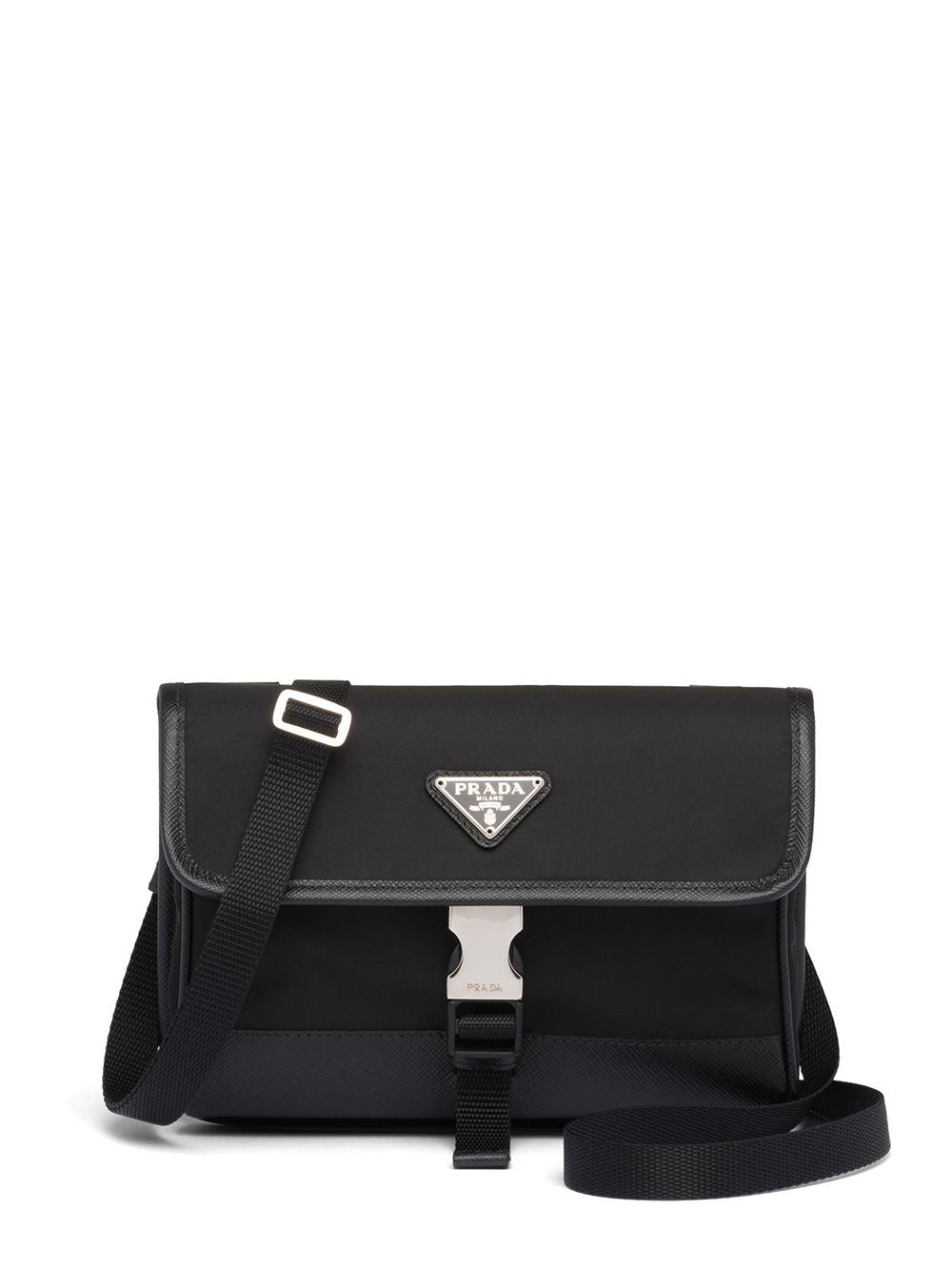 The adjustable webbed strap and secure buckle closure make it perfect for hands-free convenience, whether you're running errands, exploring the city, or enjoying a night out. Crafted from Prada's signature Re-Nylon—a sustainable regenerated nylon—and refined Saffiano leather trim, this piece exemplifies the brand's commitment to both luxury and environmental consciousness.