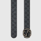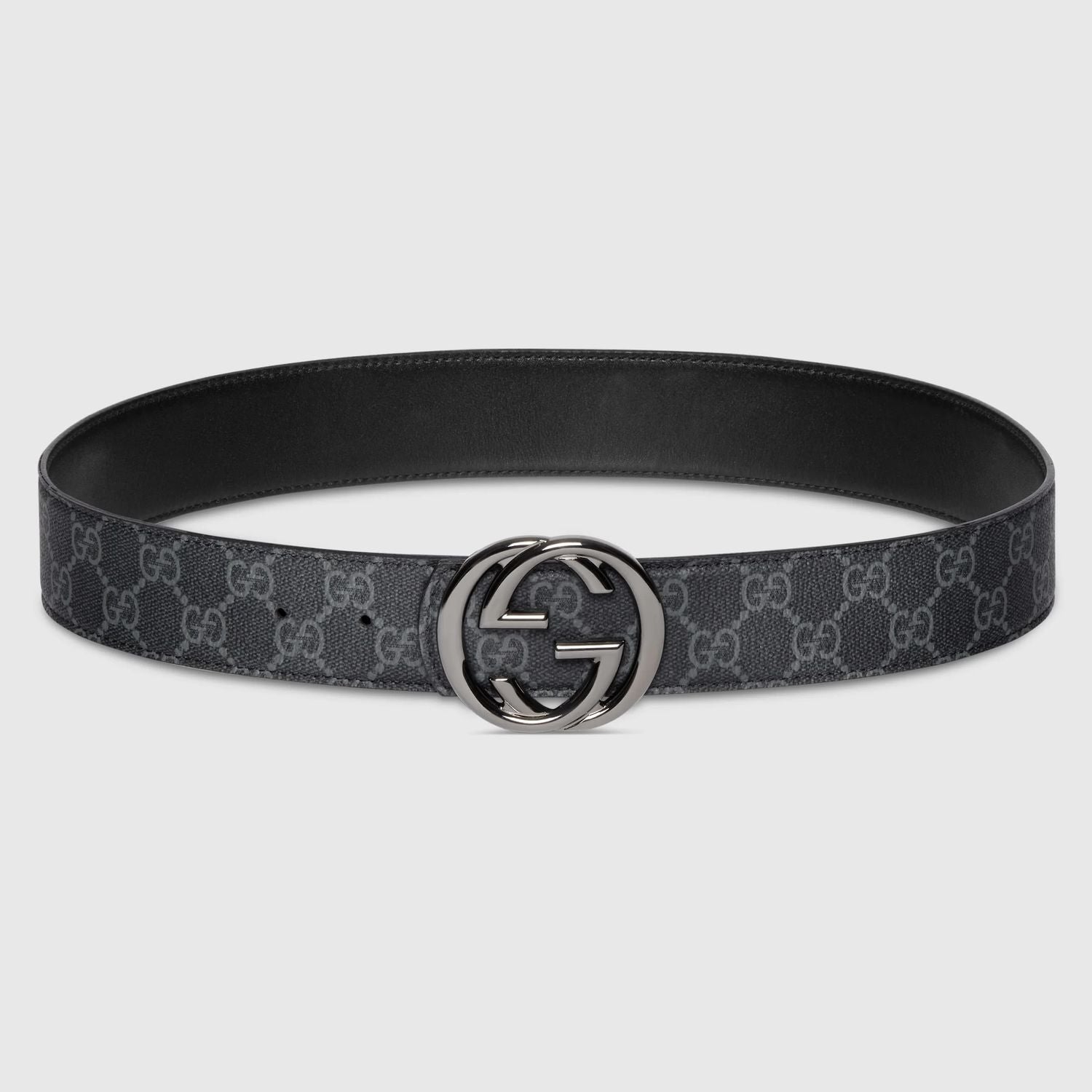BELT IN SOFT BLACK GG SUPREME ON ONE SIDE AND BLACK LEATHER ON THE OTHER. IT FEATURES RUTHENIUM-COLORED HARDWARE AND A REMOVABLE GG CROSS BUCKLE. ANY IMPERFECTIONS IN THE LEATHER SHOULD NOT BE CONSIDERED MANUFACTURING DEFECTS, BUT RATHER A CHARACTERISTIC OF THE MATERIAL.
