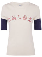 CHLOE EMBROIDERED LOGO RIBBED TOP WHITE OFF WHITE RIBBED TEXTURE EMBROIDERED LOGO SHORT SLEEVES COLOR BLOCK SLEEVES CREW NECK COTTON T SHIRTS AND JERSEY SHIRTS TOPS CLOTHING WOMEN