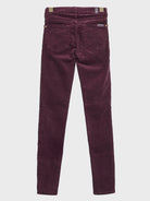 Plum-colored ribbed trousers in a cotton blend. Featuring belt loops, five pockets, classic zip and button closure, a velvety effect, and a low waist. Slim fit.