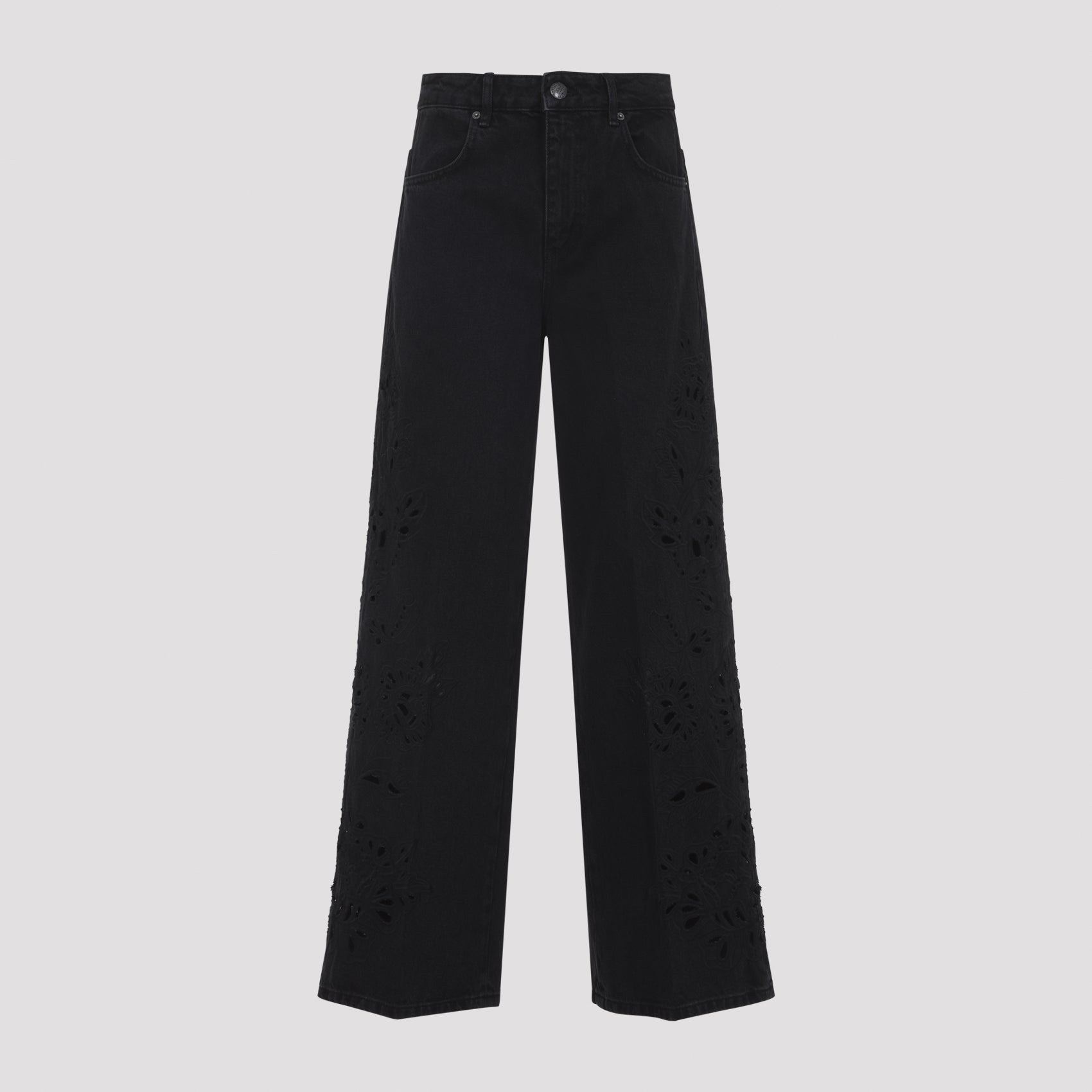 Elevate your denim collection with the Richilieu Denim Pants from FARM Rio. These sophisticated wide-leg pants feature a timeless black wash and a flattering high-waisted silhouette that elongates the legs beautifully.