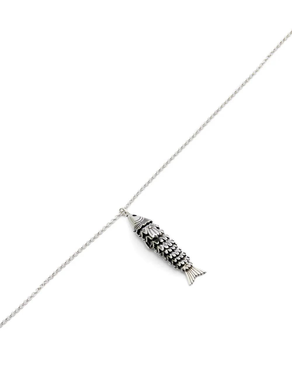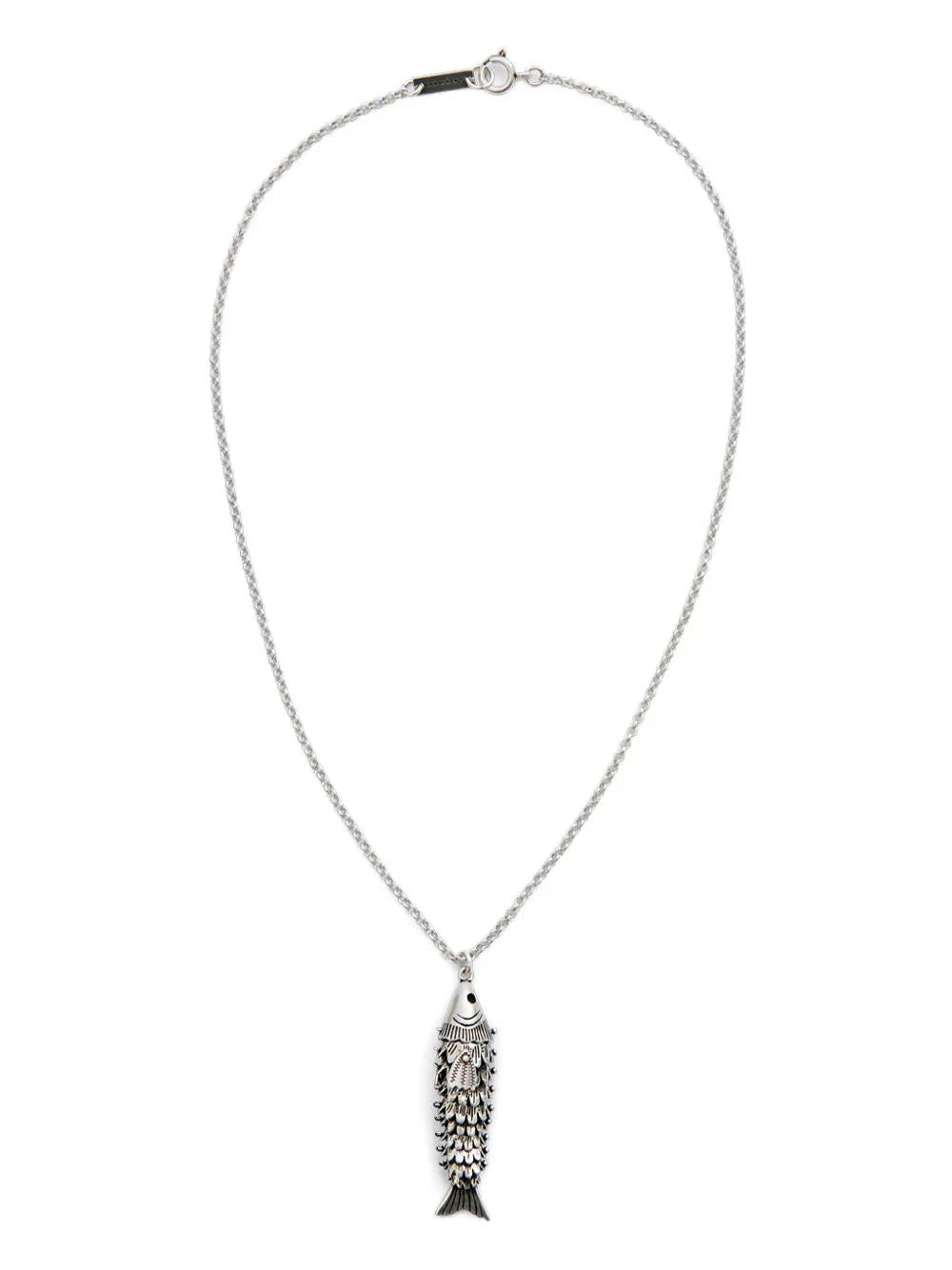 Crafted in silver-tone brass, this necklace features a unique fish-shaped pendant that adds a playful yet sophisticated touch. The engraved logo plate and spring ring clasp showcase Isabel Marant's attention to detail and quality craftsmanship.