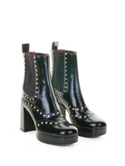Featuring distinctive stud detailing and elastic side panels, these heeled booties offer both style and comfort with their chunky block heel and platform sole.